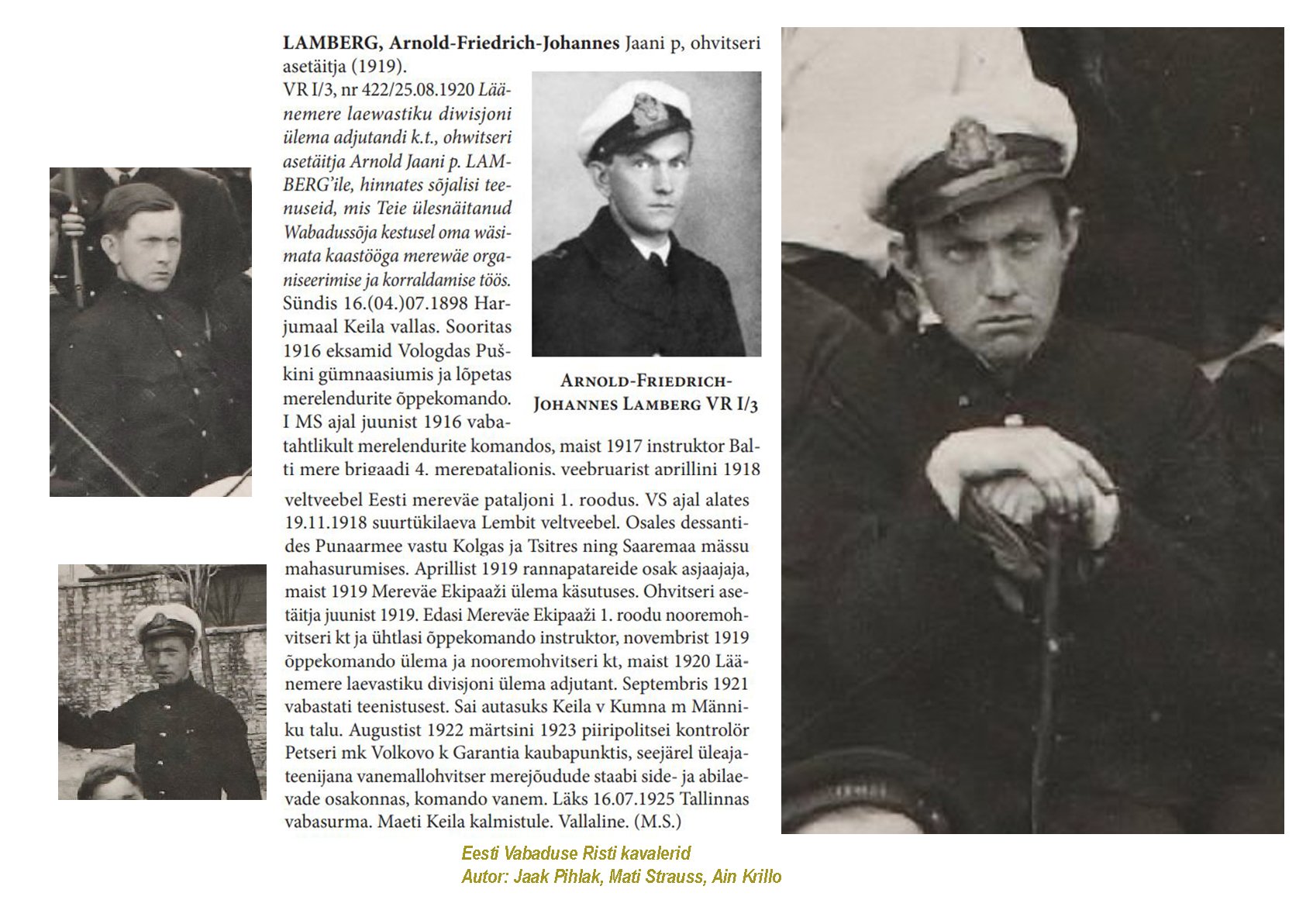 Eesti Mereväe õppekomando (Mereväe Ekipaaži õpperühm) 1919.a. Algselt asuti Tallinna sadama tollimajas, fotod sellest ajajärgust. Esimesel fotol (mehed relvadega) info: Merewäe õpe-komando Tallinnas 10-mal Mail 1919 aastal ja meeste nimed - Lamberg, Ilves, Akelman, Järwan, Werliin, Pommer, Treewing, Sander, Laaren, Meiusi, Kampa, Peitebaum, Stinberg, Gründal, Mikk, Peekman, Rõemus, Liik, Otsman, Põitel, Pellman, Pung, Krüninberg, Nõmberg, Eeward, Treisalt – või umbes nii, käekiri pole just parim.