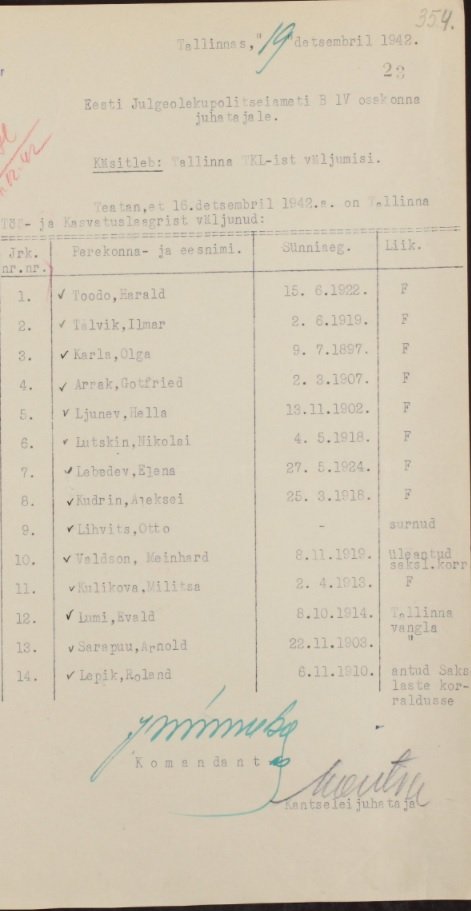 Omamoodi huvitav. Inimestele, kes saadeti otse hukkamisele, kirjutati nendes nimekirjades tavaliselt "Väljumise liik: E". Samas, olen leidnud ka selliseid seoseid, et isik anti sakslastele üle ja sellest päevast tunnistati ka ametlikult surnuks.