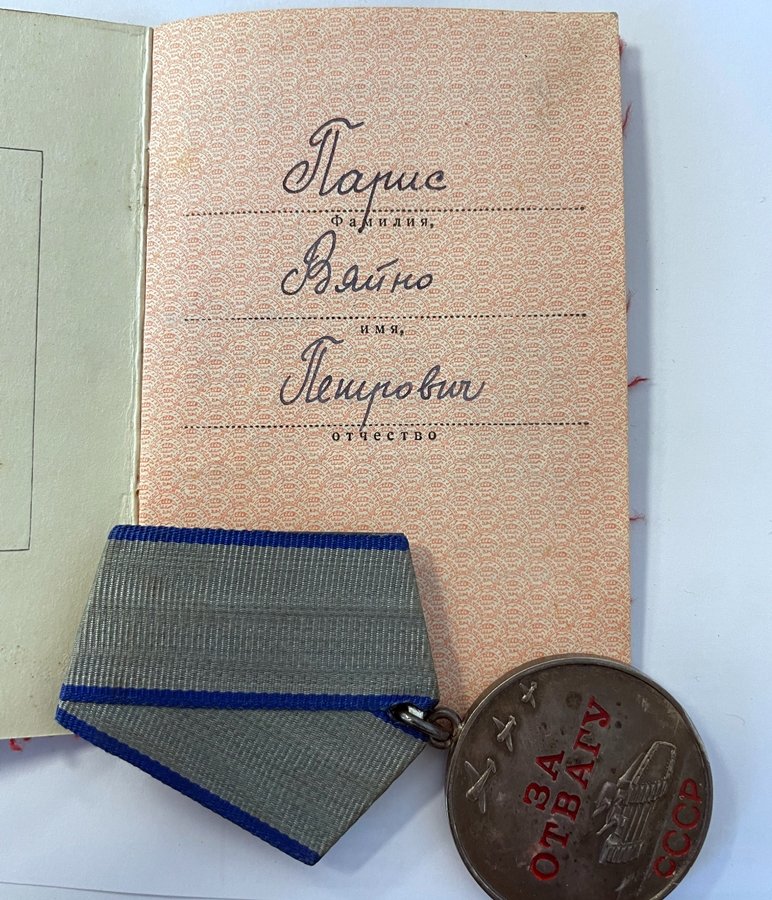 249. laskurdiviisi 917. laskurpolgu 45mm kahurite patarei sihturi abi jefreitor Väino Paris. Vapruse medali 2352679 kavaler. Autasu saadud Kuramaa lahingutes, kui Vitõni küla juures 20.03.1945.a toimunud lahingus vahetas välja haavata saanud sihturi ja vaatamata vaenlase vastupealetungile hävitas täpse tulega kaks vaenlase kuulipildujat ning kuni 15 sõdurit.