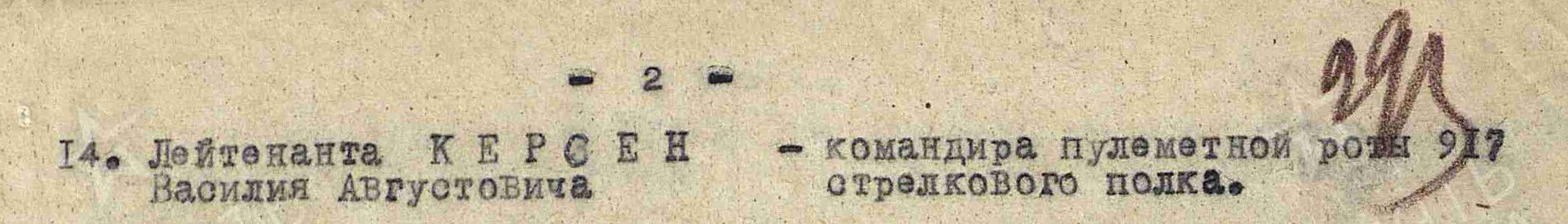 ELK 249. laskurdiviisi 917. laskurpolgu kuulilpildujaroodu komandöri, leitnant Vassili Augusti p. Kersen'i autasud.