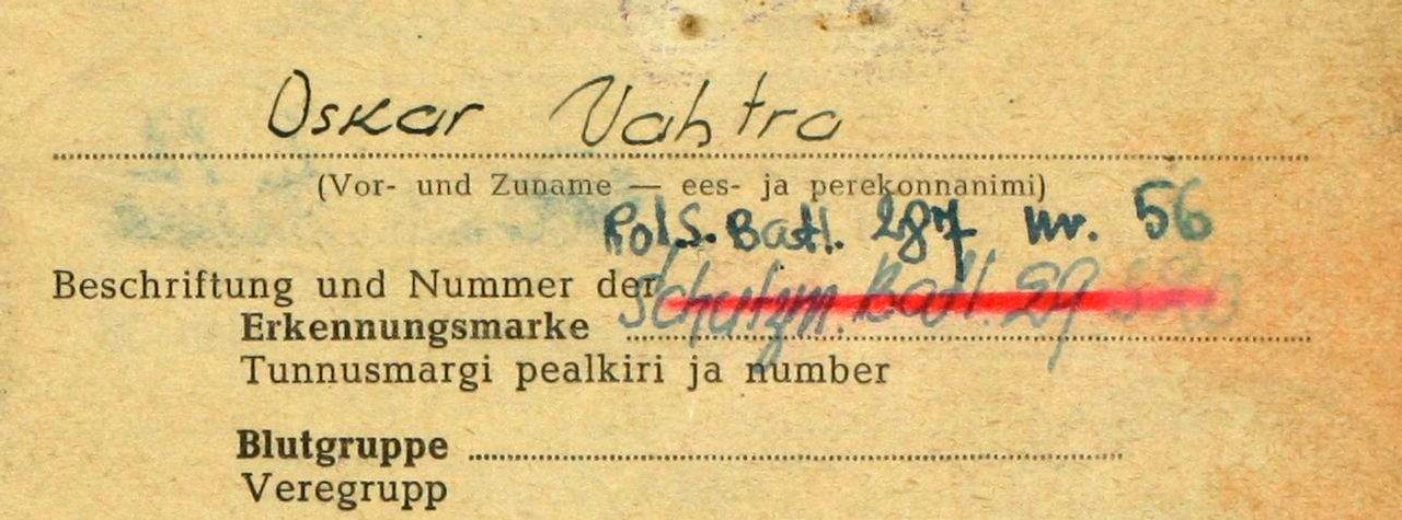 1945. aasta 27. jaanuari hommikul Falkenbergis langenud 20. ED 46. rügemendi võitlejal Johannes Pikkur'il oli kaelas samuti 29. Kaitsepataljoni žetoon aga natuke teistsuguse kirjaga Oskar Vahtra SB's on märgitud - Estn.Schtzmsch.Btl.29