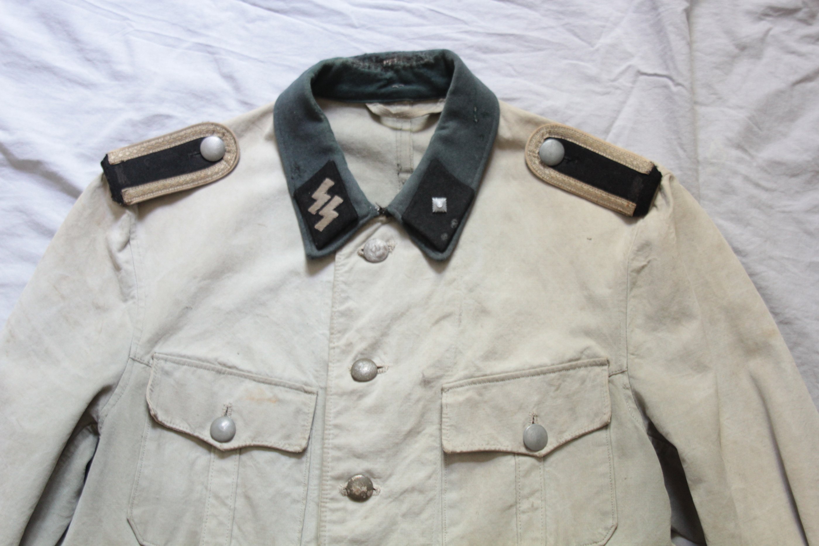 Jakk tehtud vene telkmantlist. Kasutatud kahte eri tooni palatkat. Tüüpiline idarinde rätsepatöö. Originaalis olid ees ainult rinnatasku nööbid.