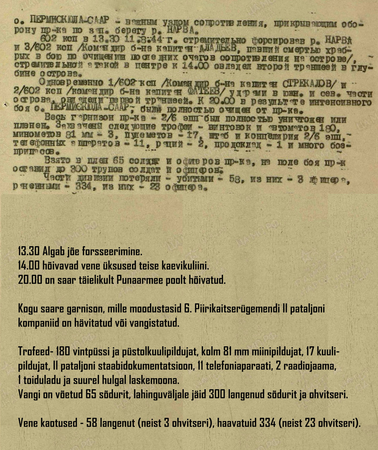 Siis on küll üks imelik kiri sest seal saarel oli paigutatud ju 2. kompani . Ja kui selle eesnimega meest ei ole selle kompani nomekirjas ega ka üldse piirikaitse rügemendis siis kuidas ta teab sellest lahingust kirjutada ?
