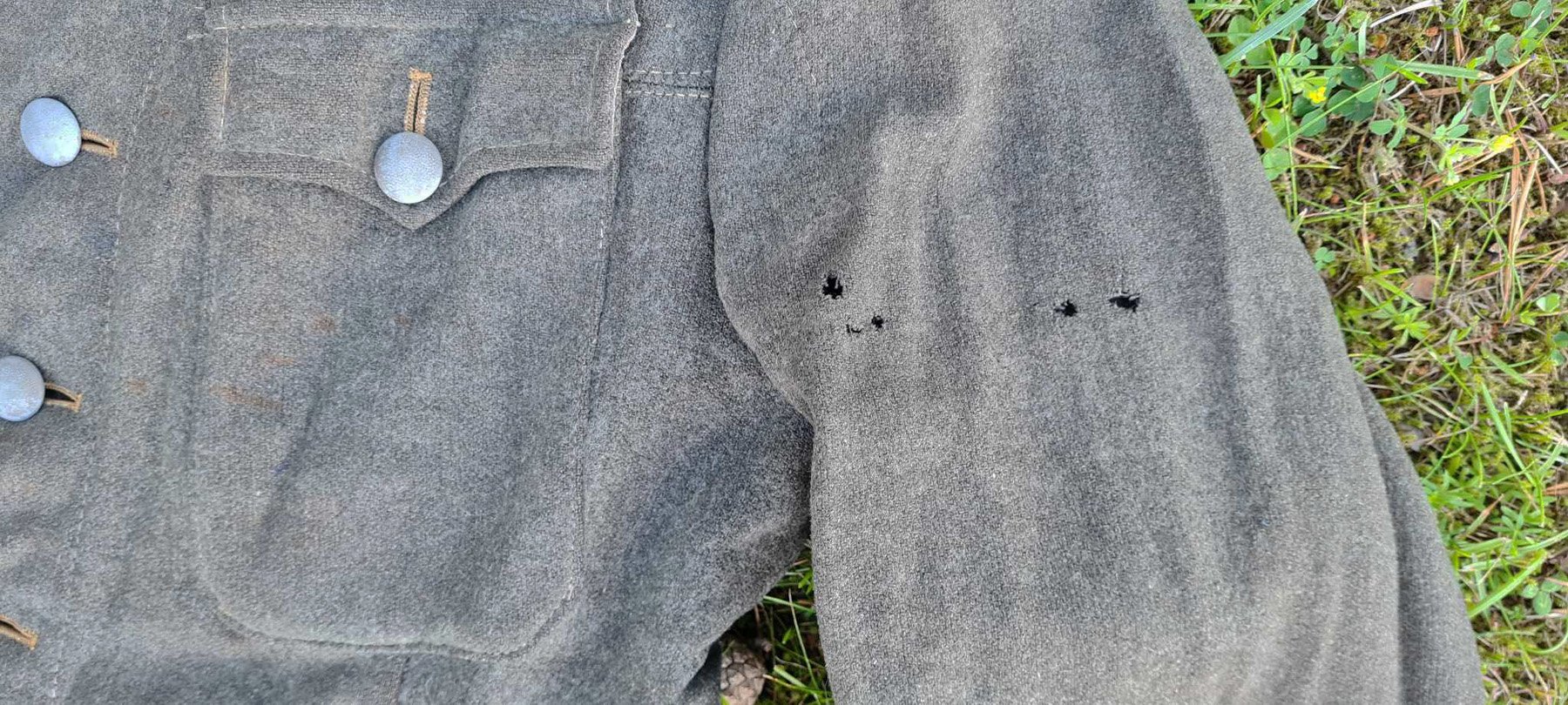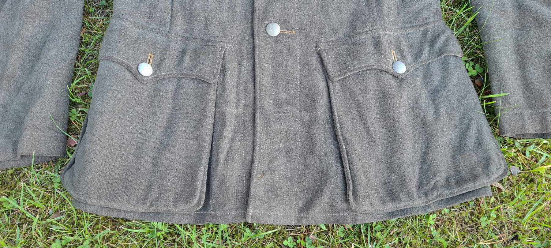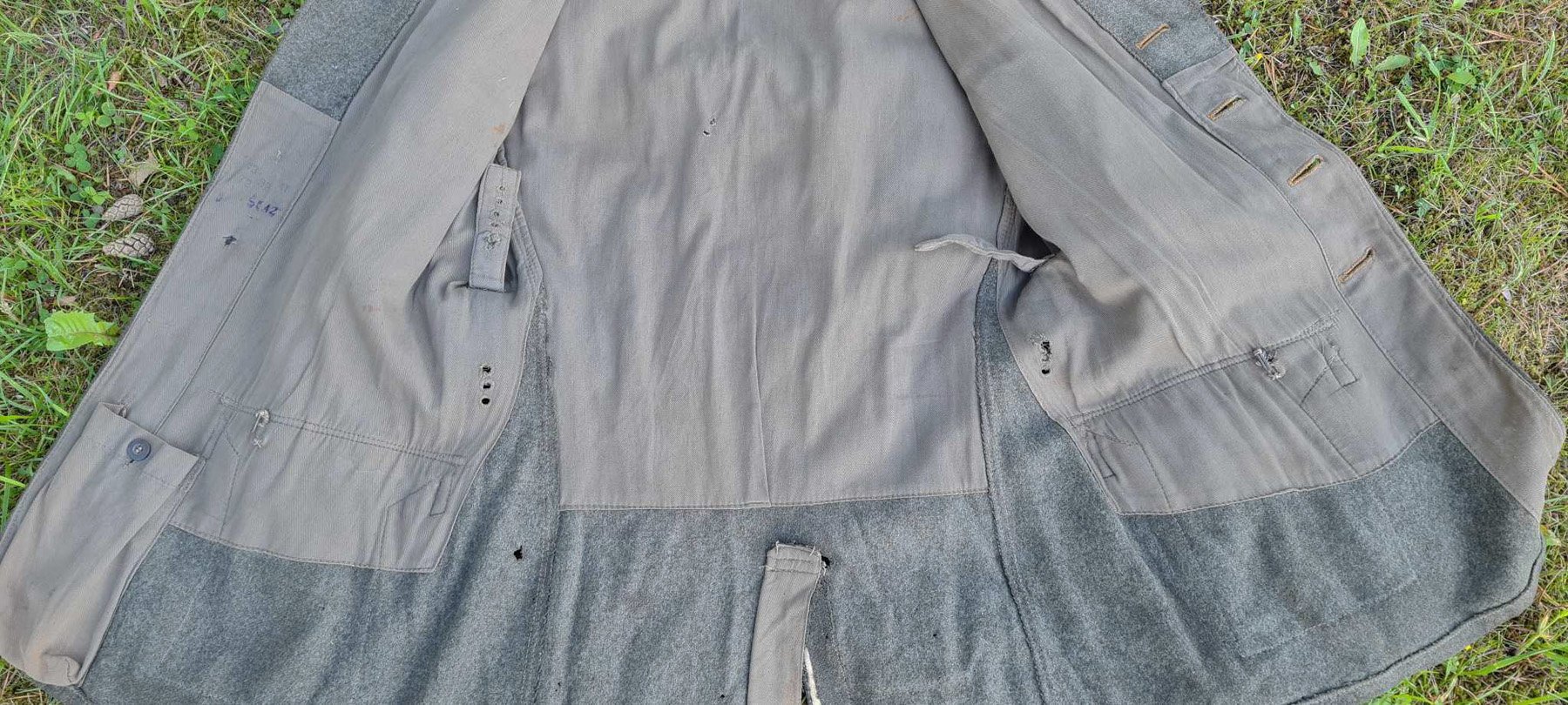 Esmapilgul nagu tavaline Wehrmacht'i m42 aga vöörihma toetuskonksude aukude arv ja asetus on teistmoodi kõigist senini nähtud villasest riidest toodetud WH vormikuubedest. Kui tavaliselt on auke 4x3 ning paiknevad need vormikuue ees ja taga siis sellel eksemplaril on 2x3 auku ja on paigutatud külgedele. Selliselt on need augud kalasabamuster kangast drillich kuubedel aga villasel kuuel ei ole sellist asja veel nähtud. Parema hõlma sees, sidemepaki kohal on mõõtude templite juures ka Stettini riidedepoo tempel aastast 1942. Huvitav on ka vormikuue vooder - kui enamikel m42 kuubedest on selleks kasutatud kunstsiidi siis sellel on vooder puuvillasest kangast nagu oli m36, m40 ja m41 kuubedel. Võimalik, et tehti mingi väike partii ekslikult kalasabamuster kanga kuubede lõigete järgi.