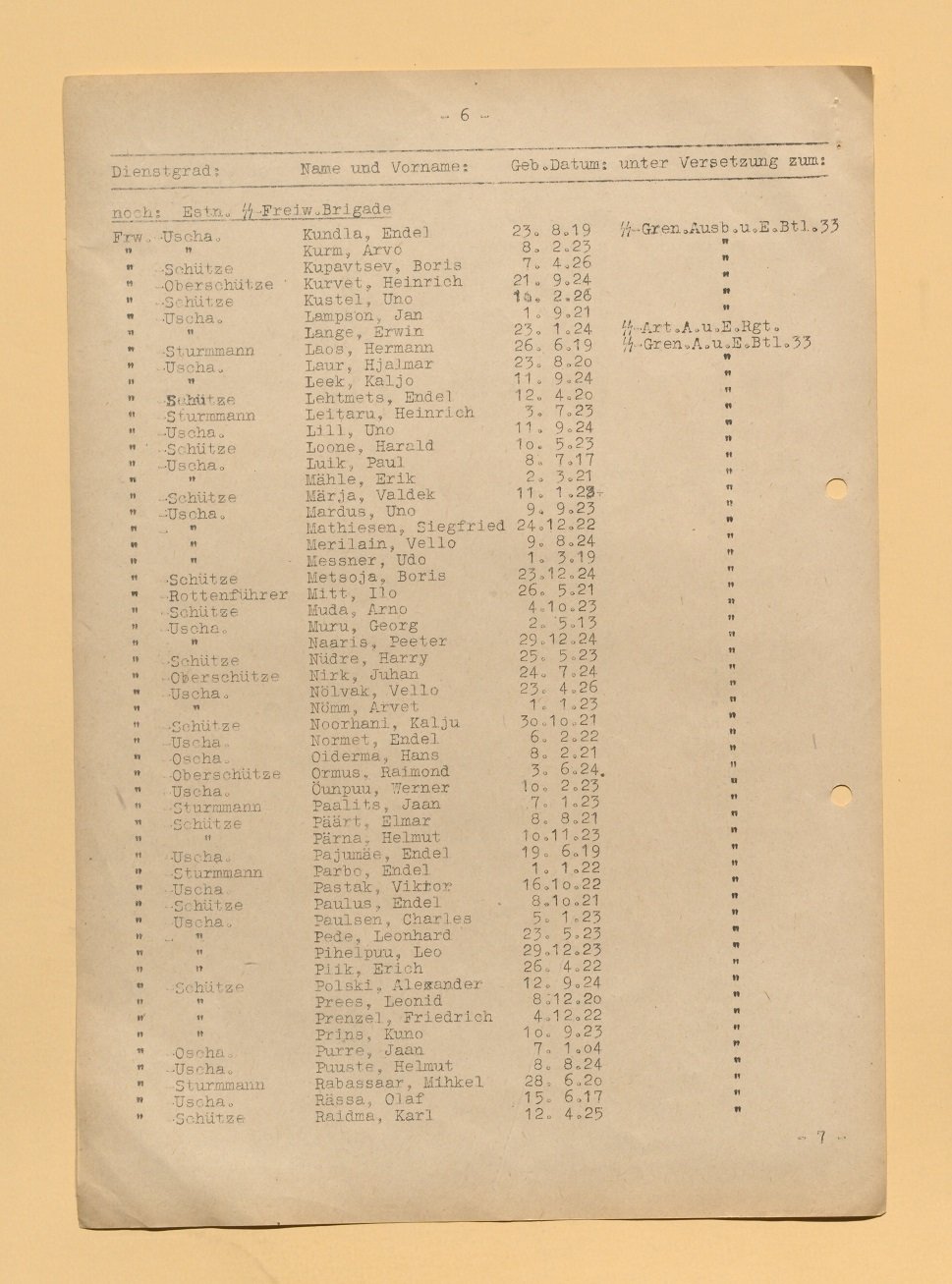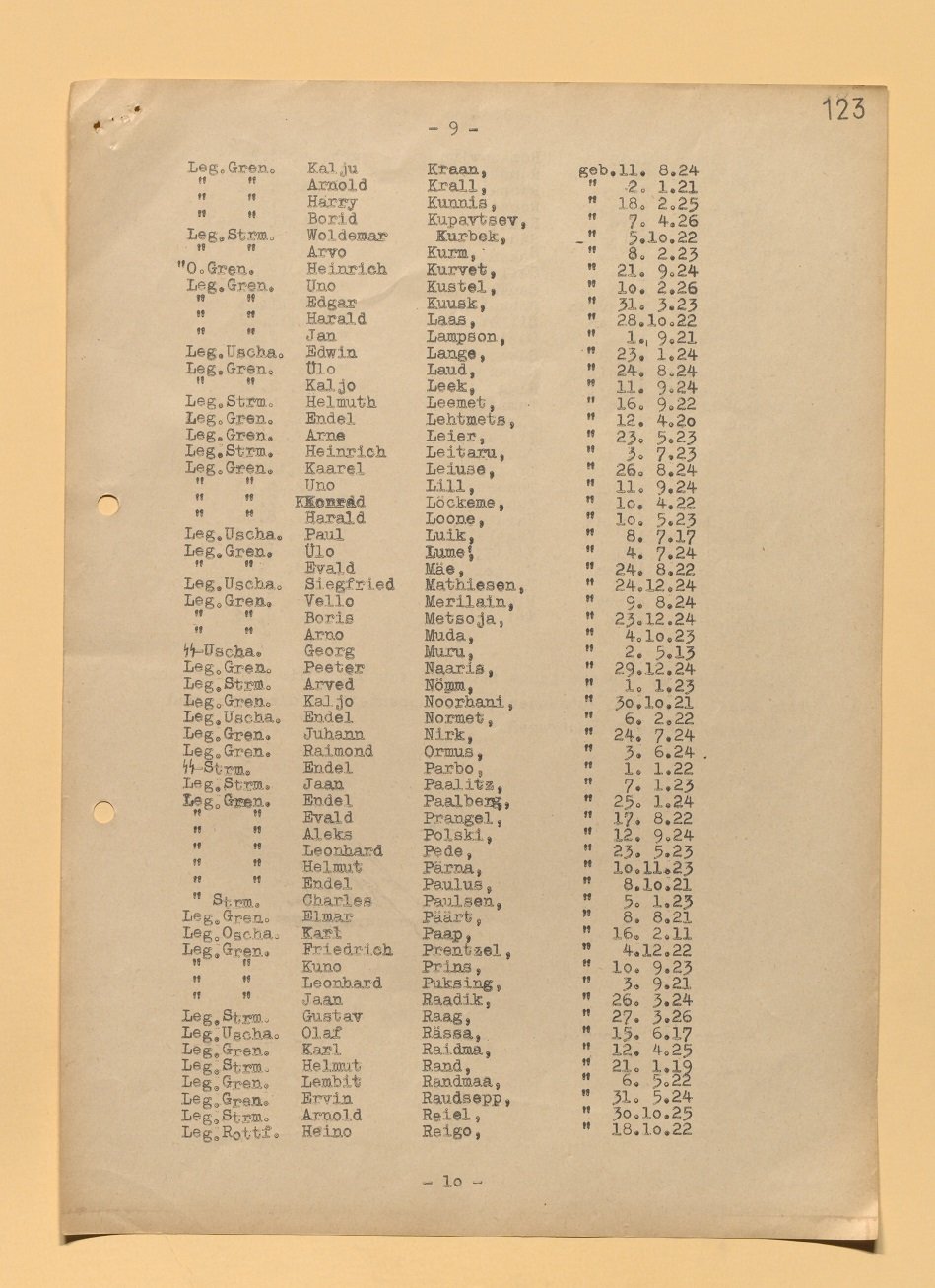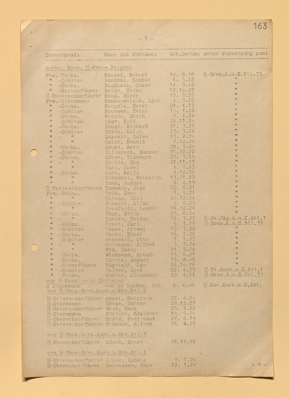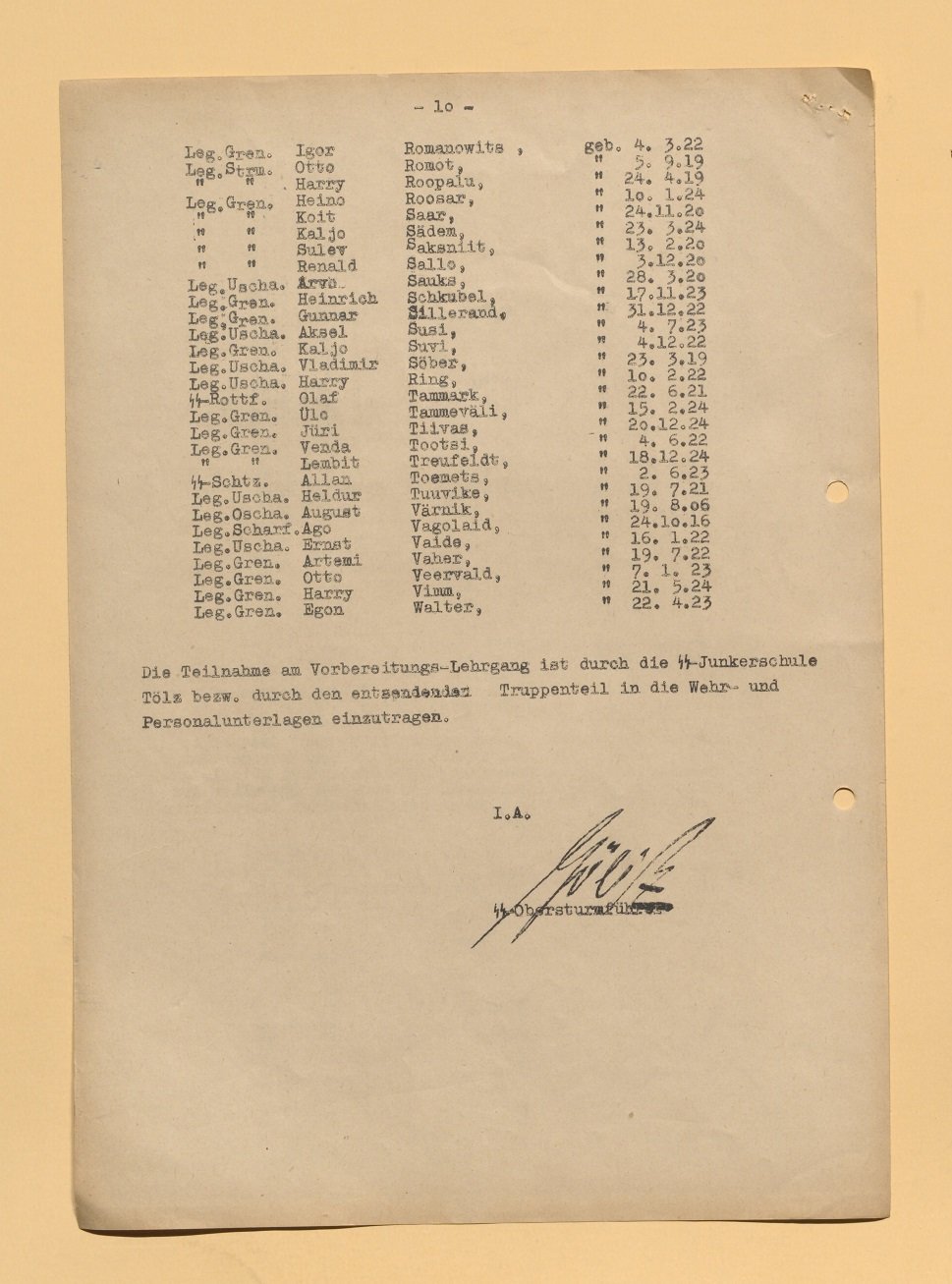 I just want to share a part of the doc where all participants of the "Vorbereitlehrgang für der 11.SS-Junkerlehrgang an der SS-Junkerschule Bad Tölz" The part I am sharing is those who where from Estonia.