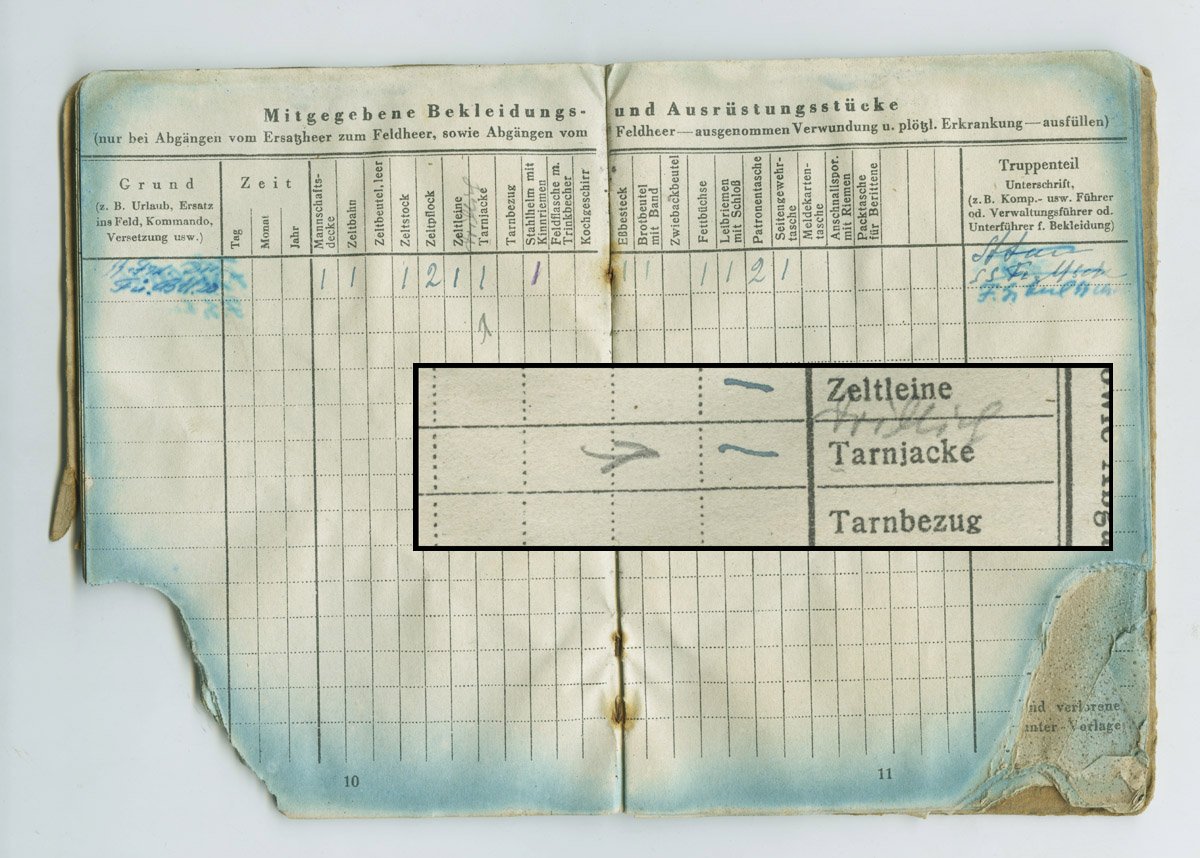 W-SS palgaraamatutes oli varustuslehel lahter Tarnjacke ja see lahter jäi sedasi minu teada sõja lõpuni kuigi ametlikult pidi uus Drillichanzug Tarnjacke koha üle võtma. Ühe Eesti diviisi füsiljeerpataljonis teeninud sõduri palgaraamatusse on tehtud pliiatsiga täpsustus Drillich.