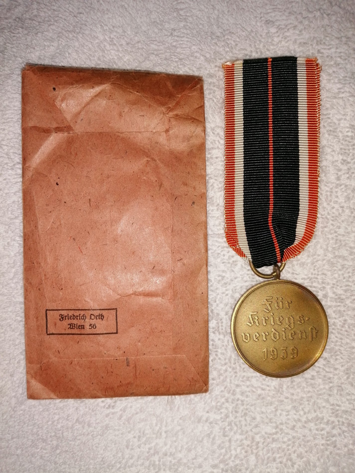 Müüa Kriegsverdienstmedaille koos kotiga ja varasema oranži lindiga,tootjaks Friedrich Orth,Wien 56.Hind 30 €.