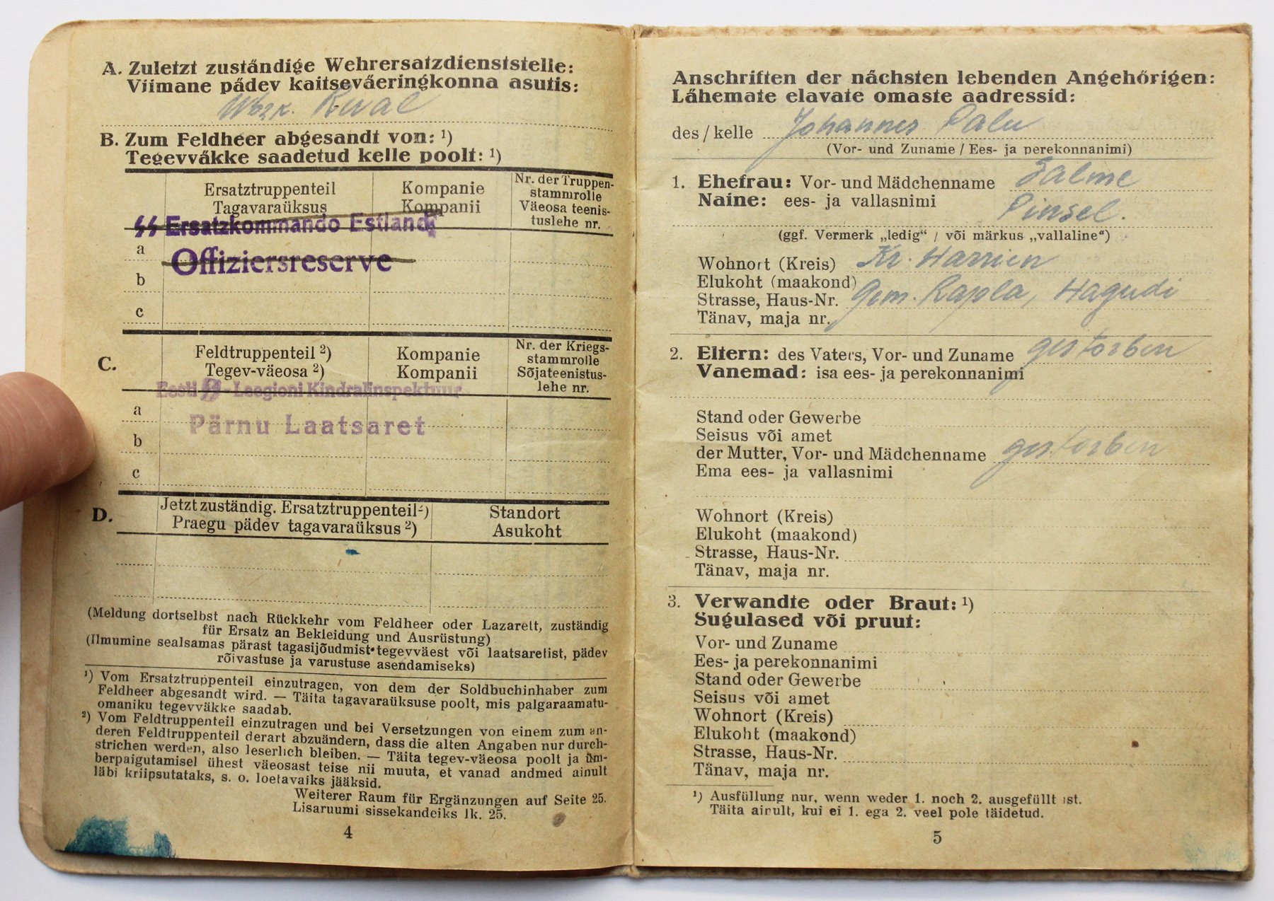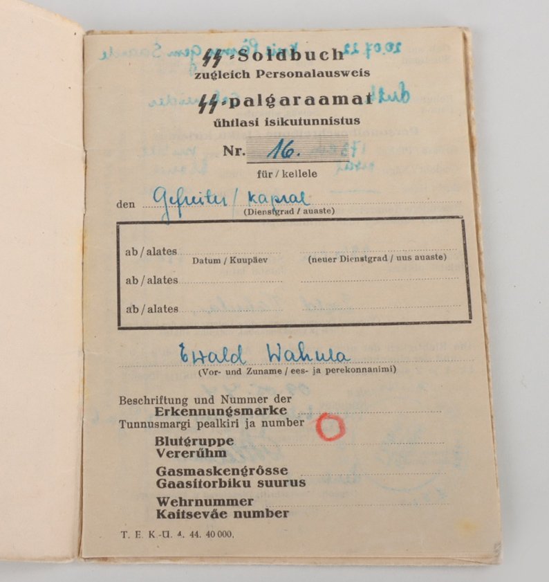 Waffen-Grenadier Einar Veiksalu palgaraamat.