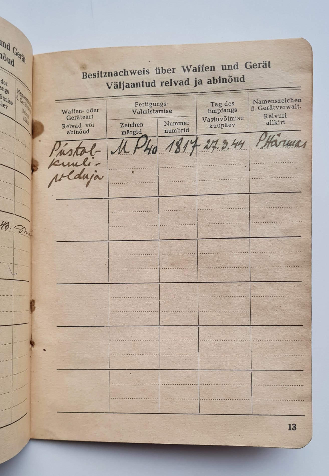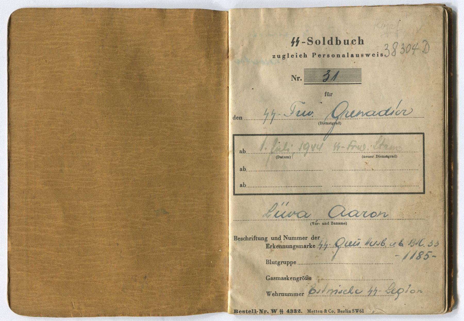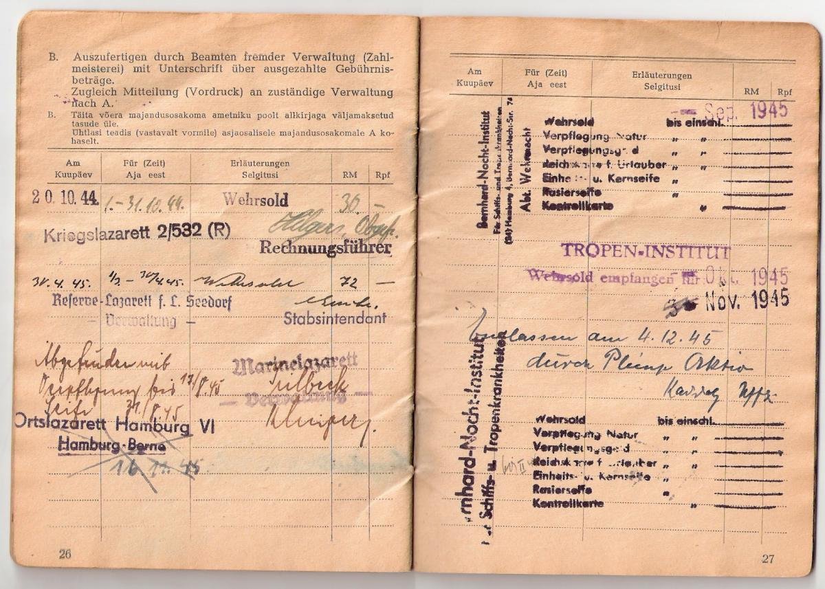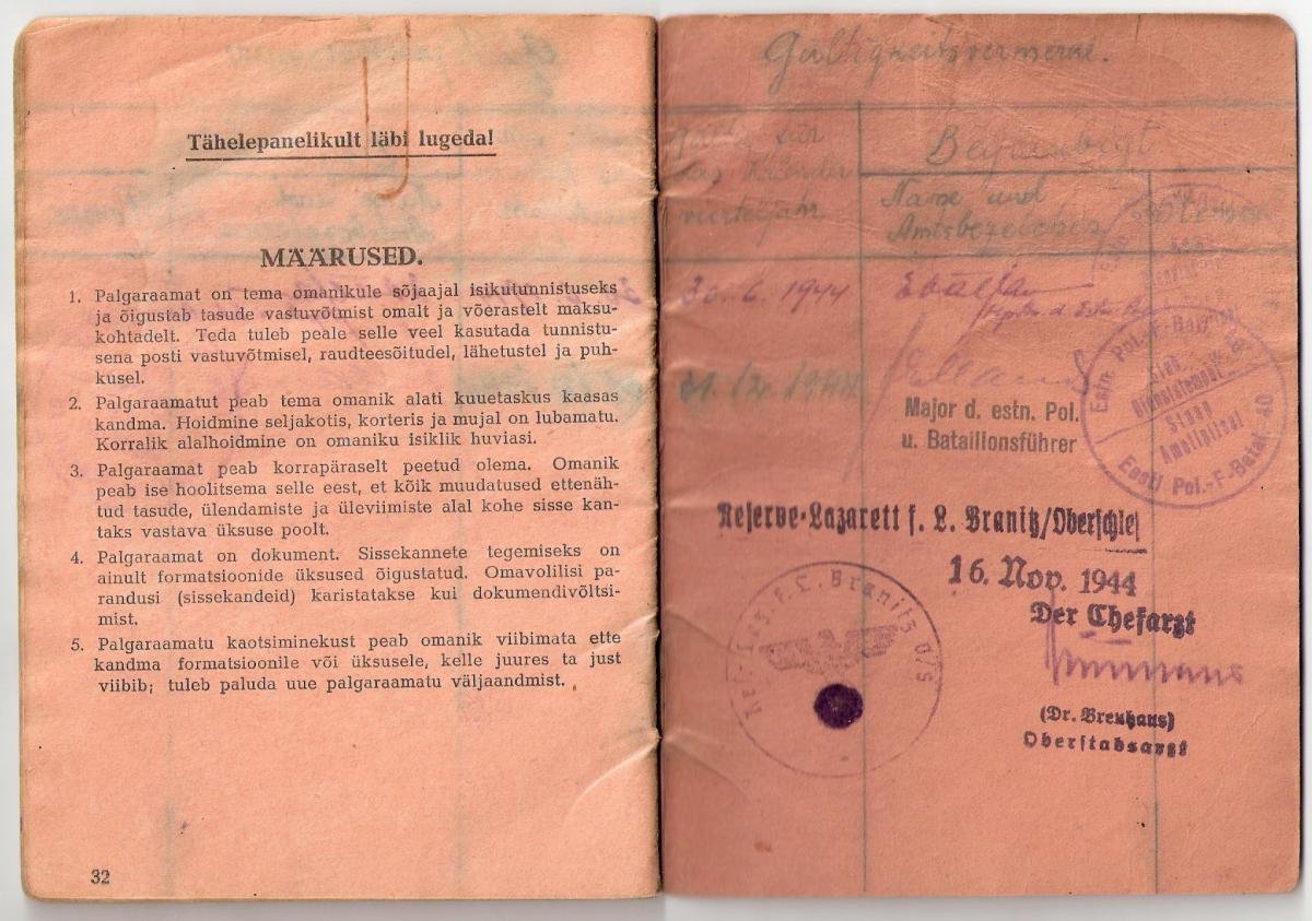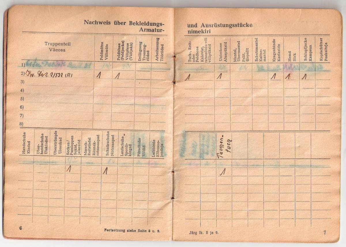 Suvel nägin ja sain pildistada ühte eestlasest Luftwaffe mehe palgaraamatut, kes kuu aega enne sõja lõppu, 1945. aasta 9. aprillil viidi üle 20. Eesti SS diviisi koosseisu.