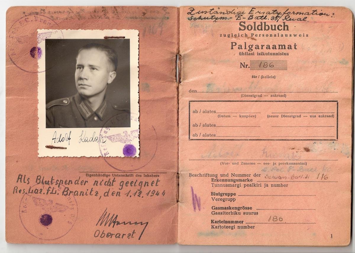 Adolf Kadak'i palgaraamat - alguses teeninud 31. Kaitsepataljonis ja hiljem 40. Eesti Politseipataljonis.