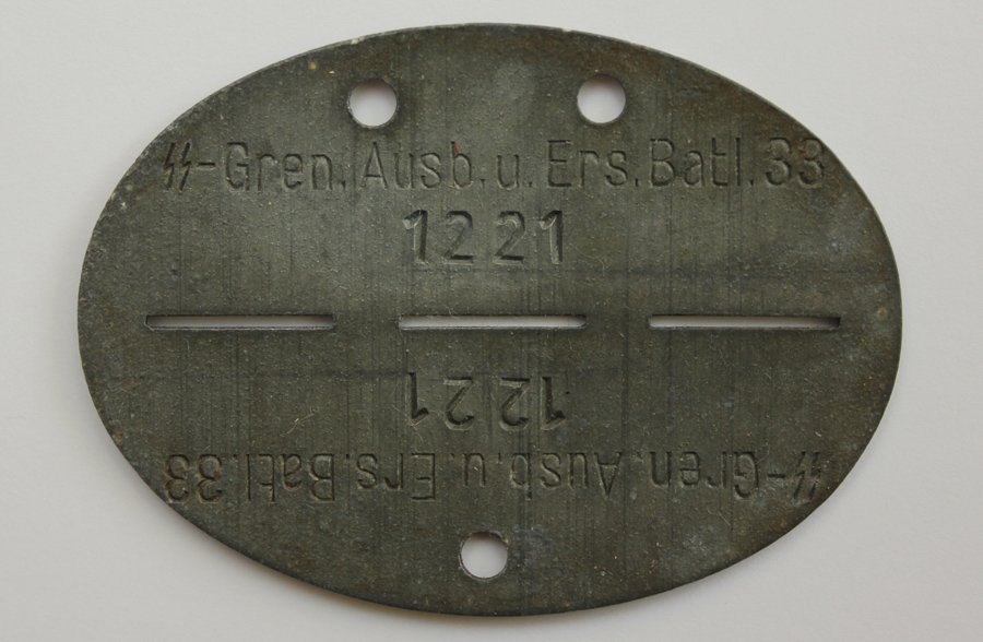 Ning lõpetuseks kõige levinum 20. ED žetoon, milleks on SS-Grenadier Ausbildungs- und Ersatz Bataillon 33 (33. SS väljaõppe- ja tagavarapataljon) lühendiga SS-Gren.Ausb.u.Ers.Batl. 33. Neid hakati jaotama sõduritele 1943. aasta kevadel / suvel Poolas Debica väljaõppelaagris ja jaotati edasi ka Klooga laagris kuni Saksa vägede Eestist taganemiseni 1944. aasta septembris. Numeratsioon algas 1'st ja jõudis välja üle 16 tuhande, mis teeb sellest kõige suuremal arvul välja antud 20. ED Erkennungsmarke. Alguses löödi kirjad tsingist žetoonidele aga hiljem raudplekile. Koguarvust suurema osa moodustavad raudplekist variandid. Kõikide valmistatud EM'ide puhul kasutati läbivalt ühte tüüpi tekstirauda ja seega on tekst on kõigil aga tsingile jäi see sügavamalt ja kergemini loetavalt kui raudplekist žetoonidele.