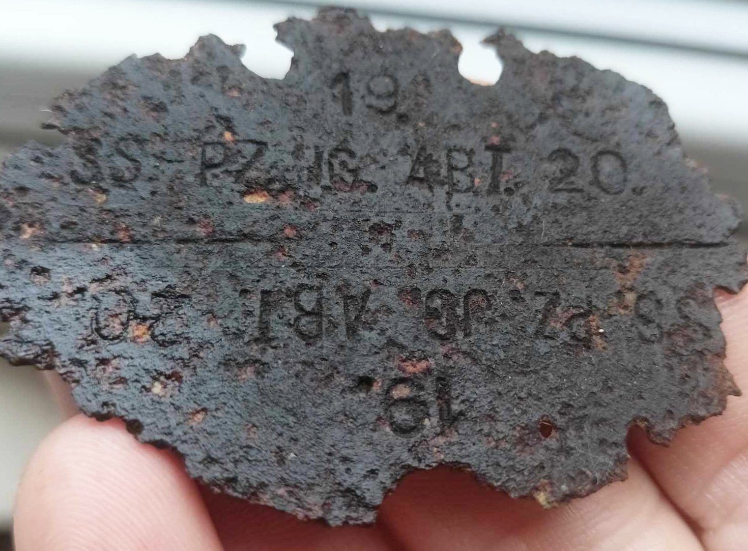 Veel üks seninägematu 20. ED diviisi variant, mis läheb sinna Waffen Grenadier Division gruppi, millest ma selle teema eelmise lehe lõpus kirjutasin. Kaks sellist žetooni leiti hiljuti Tšehhist - mõlemad roostevabast terasest, numbritega 9524 ja 9540.