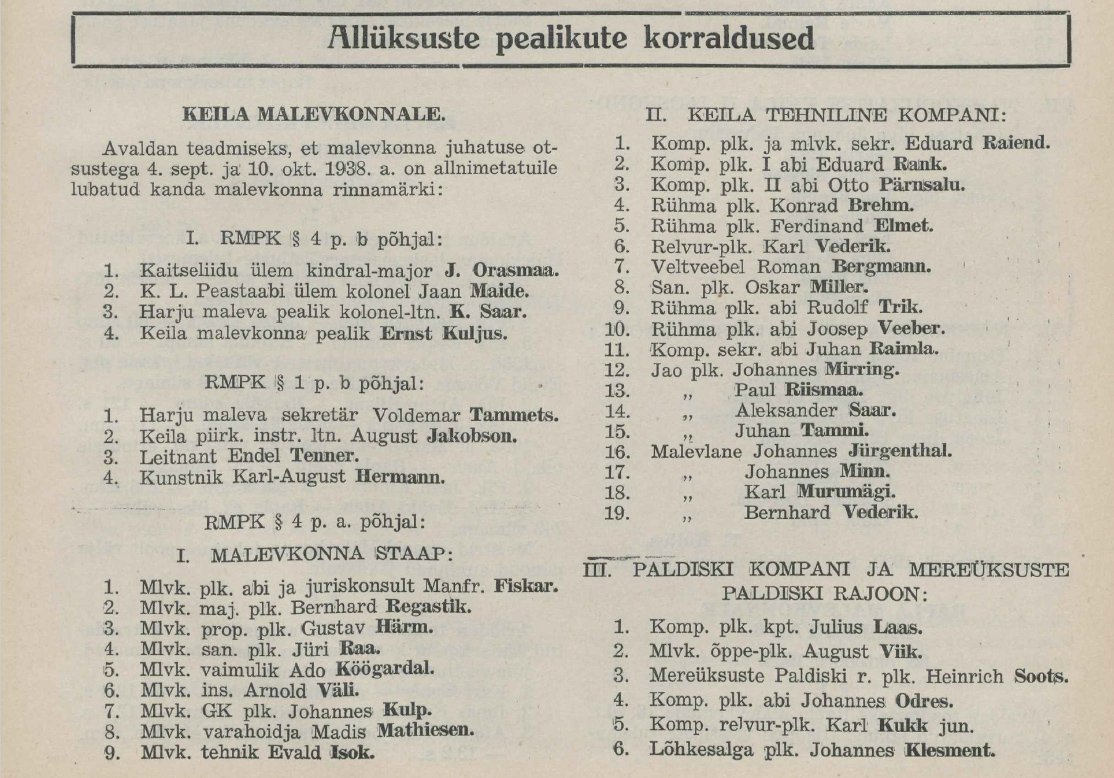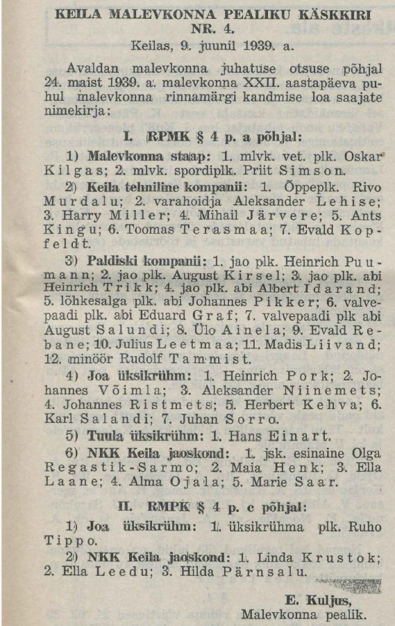 Mida saavad teha inimesed, kelle kodustes kogudes on esemeid või materjale Harju maleva tegevusest? “Nad saavad maleva staabiga või ka minuga kindlasti kontakti. Saata võib ka meili aadressil juripaasuke@gmail.com. Kui ei soovi asju annetada või müüa, saab nendest teha koopiad või fotod,” soovitab mees. Huvitatud on tema ja teised KL ajaloo uurijad kõigest, mis puudutab praeguse maleva malevkondi.
