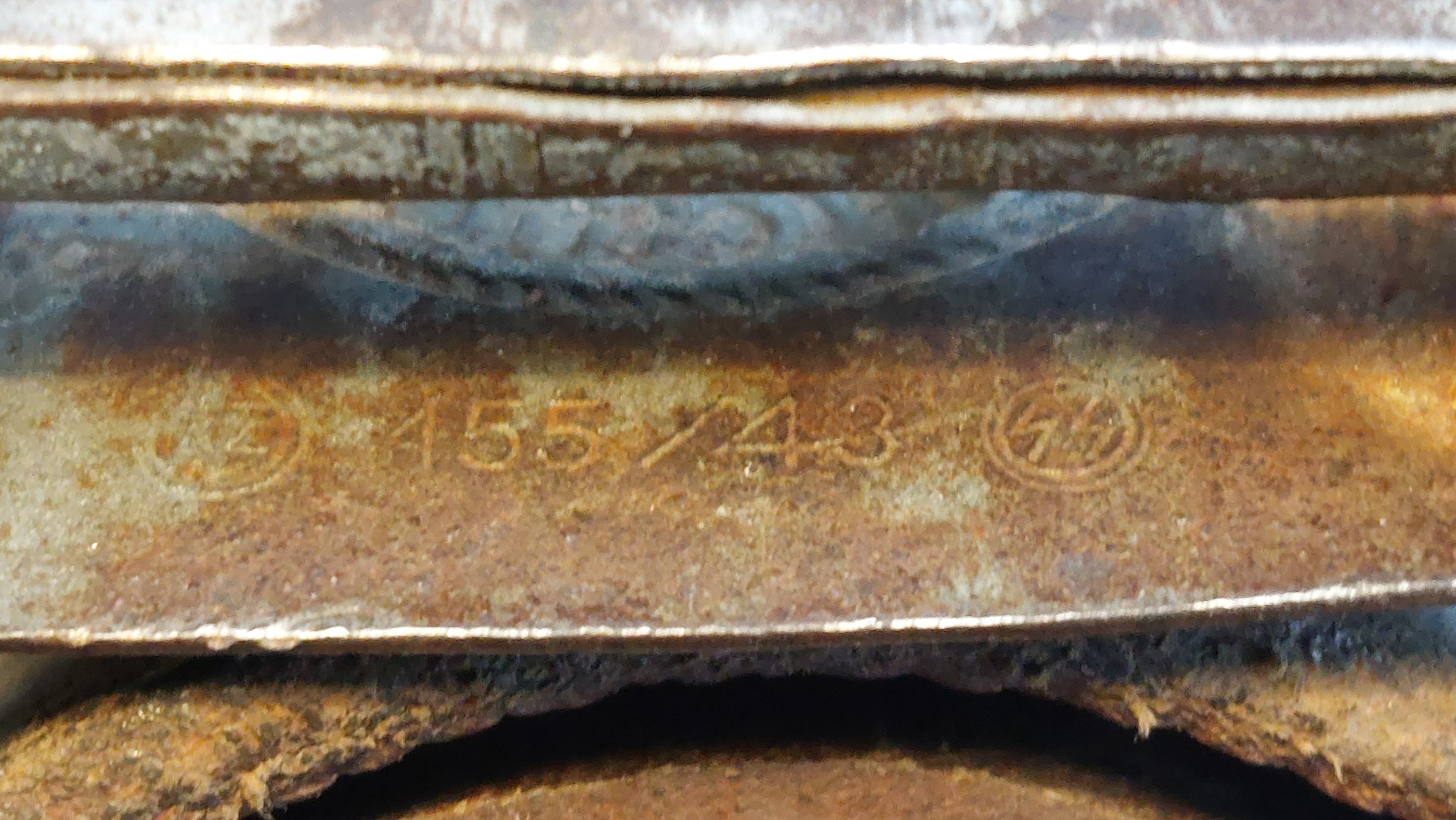 155/43 - kruntvärv või tsingitud pind on olnud kaetud halli värviga, millest enamik on maha kulunud. Selle pandla sain 24-25 aastat tagasi ja esmane omanik oli Egon Saa nimeline mees.