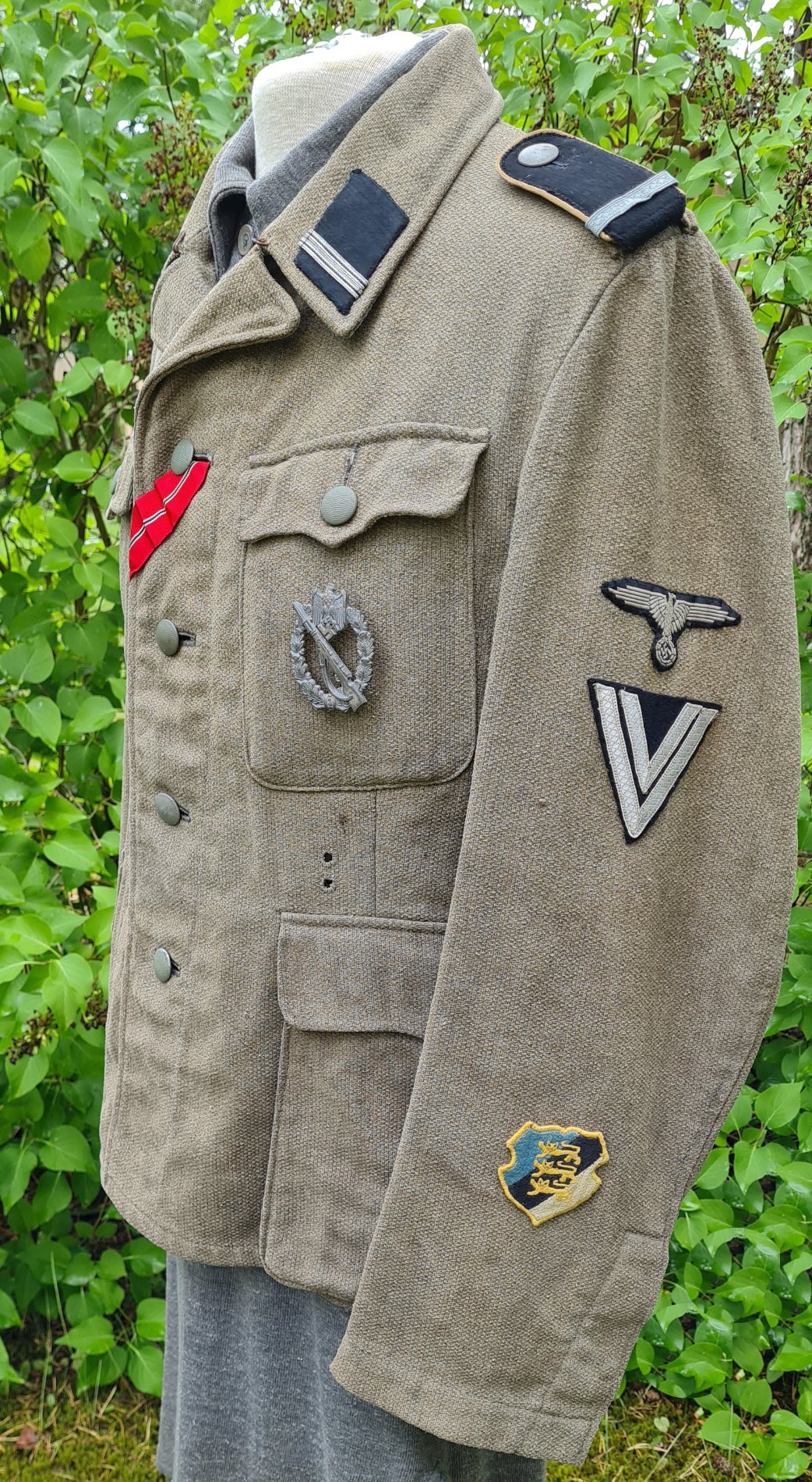 Huvitavast kangast W-SS m42 vormikuub, milliseid on näha ainult Eesti ja Läti W-SS diviiside võitlejate seljas. Ei ole selge, mis päritolu selline kangas on - keegi oletas, et mingit sorti ennesõjaaegne Läti kangas. Sellisest riidest valmistati teadaolevalt ainult W-SS m42 kuubesid ja m40 välimütse ja mõlemaid valmistatud riideesemeid on aastate jooksul Eestist leitud. Minu kuuel on sees Steinmeyer tootjamarkeering aga ühe lätlase kollektsioonis on samasugusest kangast kuub, millel on sees RBN kood. Ei tea, miks need kuued ja mütsid ainult Eesti ja Läti diviisidesse jõudsid. Võimalik, et kogu partii jaotati laiali läbi Tallinna või Riia Truppenwirtschaftslager'i (varustusladu) või läbi Riia Bekleidungslager'i (riideladu) ning seetõttu jõudsid just ainult siinsetele diviisidele.