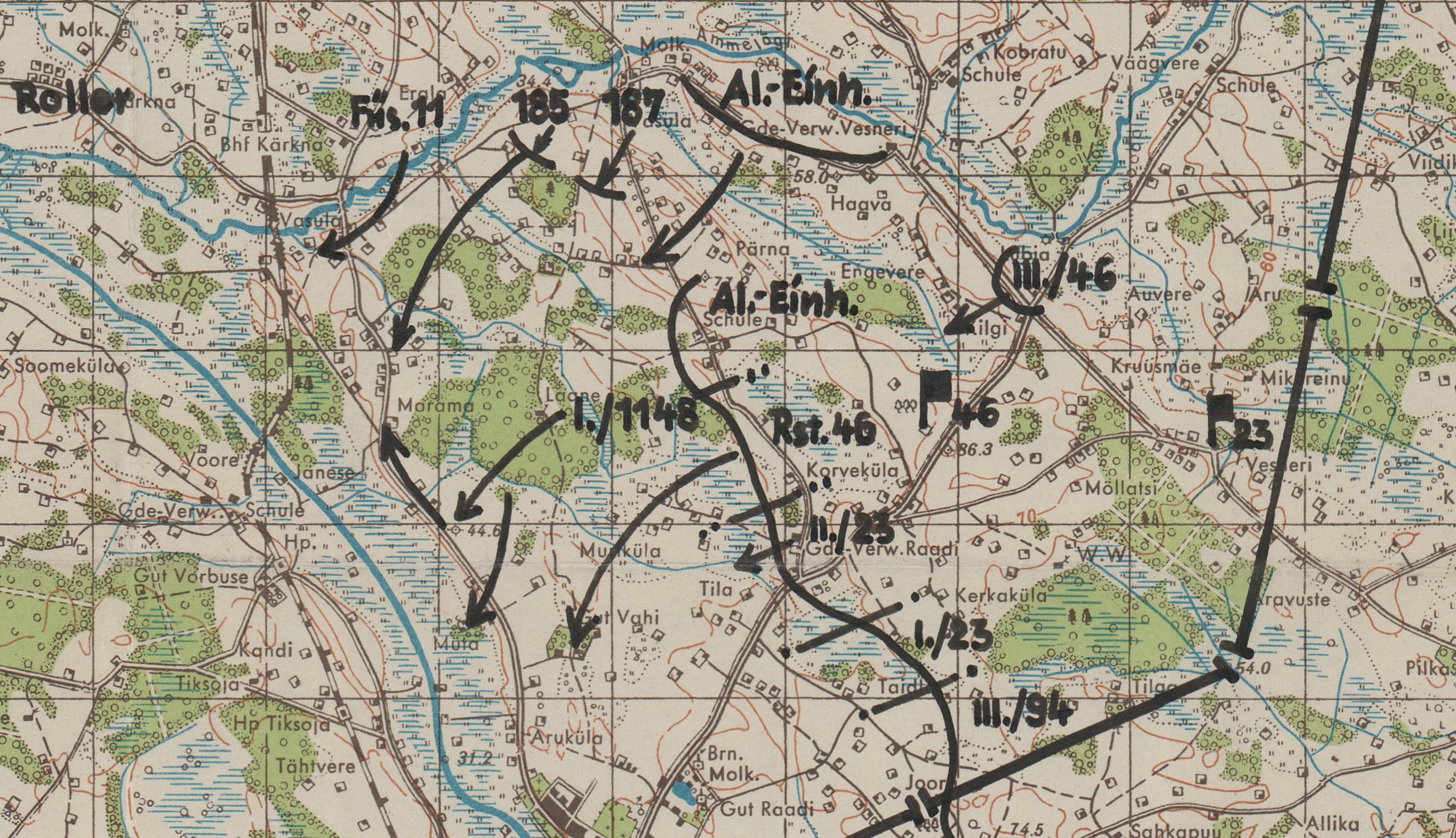 Uscha, tekkis küsimus et mis üksused seal kaardil on?1148 rahvagrenaderid mul juba teada aga kes need Füs 11,185, 187, Al-Einh ja Rst 46 on?