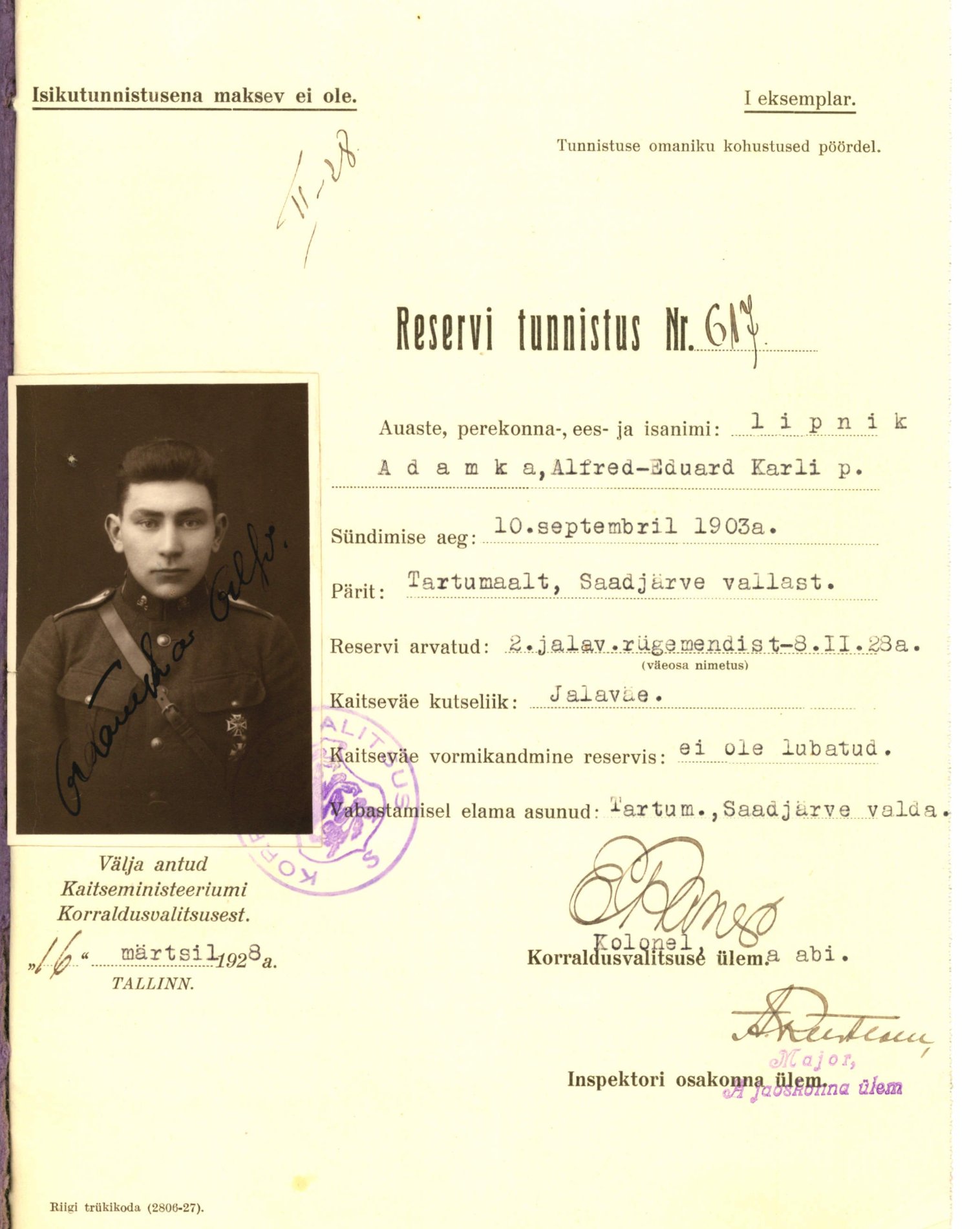 Otsin infot tuttava vanaisa kohta. Alfred Eduard Adamka, Karli poeg sündinud 10. September 1903