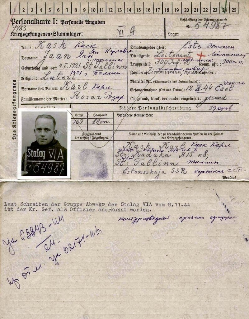 See konkreetne autasu oli ühes välismaises foorumis. Leitnant Jaan Kask 7. Eesti Laskurdiviisi 300. Laskurpolgu 5. laskurroodu rühmakomandör. Punatähe ordeni 2018110 kavaler, autasustati 1944. a sügisel.