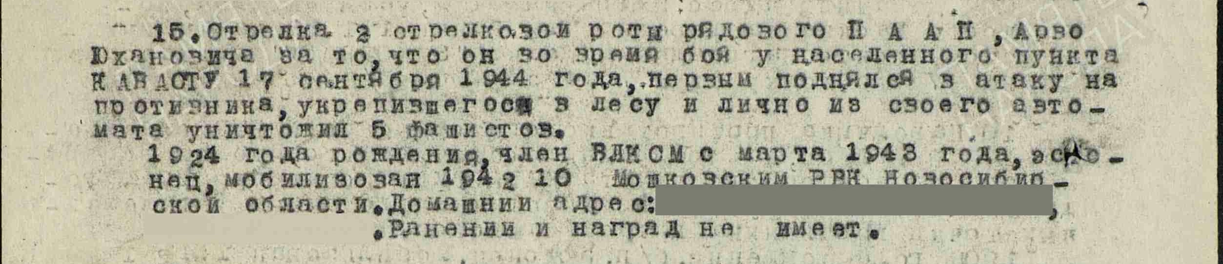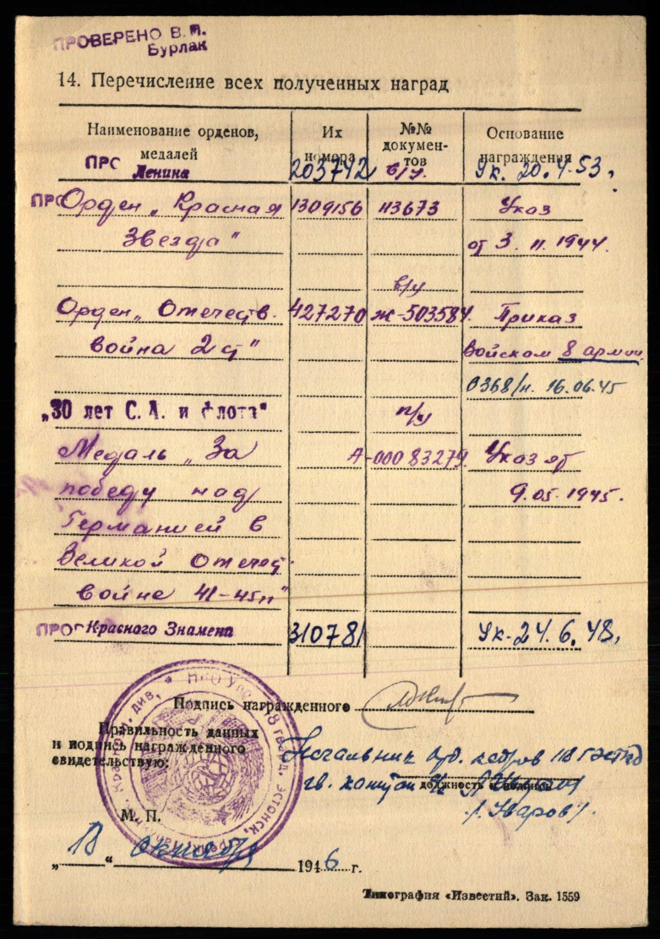 Huvitav ses mõttes, et autasudele vastavalt too võitleja PAAP ei demobiliseerunudki kunagi vaid jäi kuni pensionieani NArmee kaadrisse - "starshinaaks" siis ilmselt // ohvitseriauastet talle vaevalt anti.