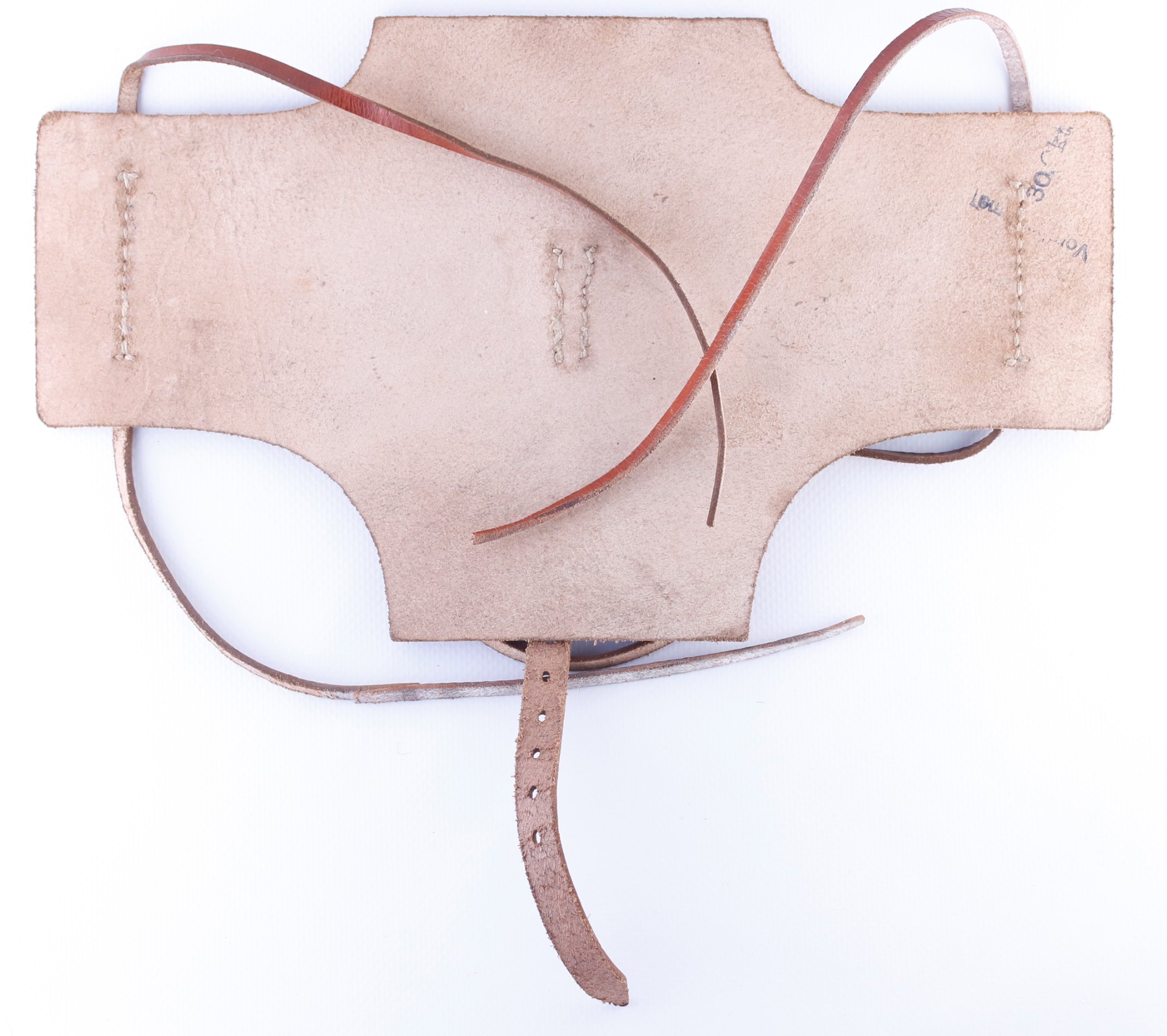 Millega võiks olla tegemist? Mõõdud on 29,8 x 17,3 cm ja külgmised peenikesed nahkrihmad tunduvad olevat mõeldud sõlmimiseks.