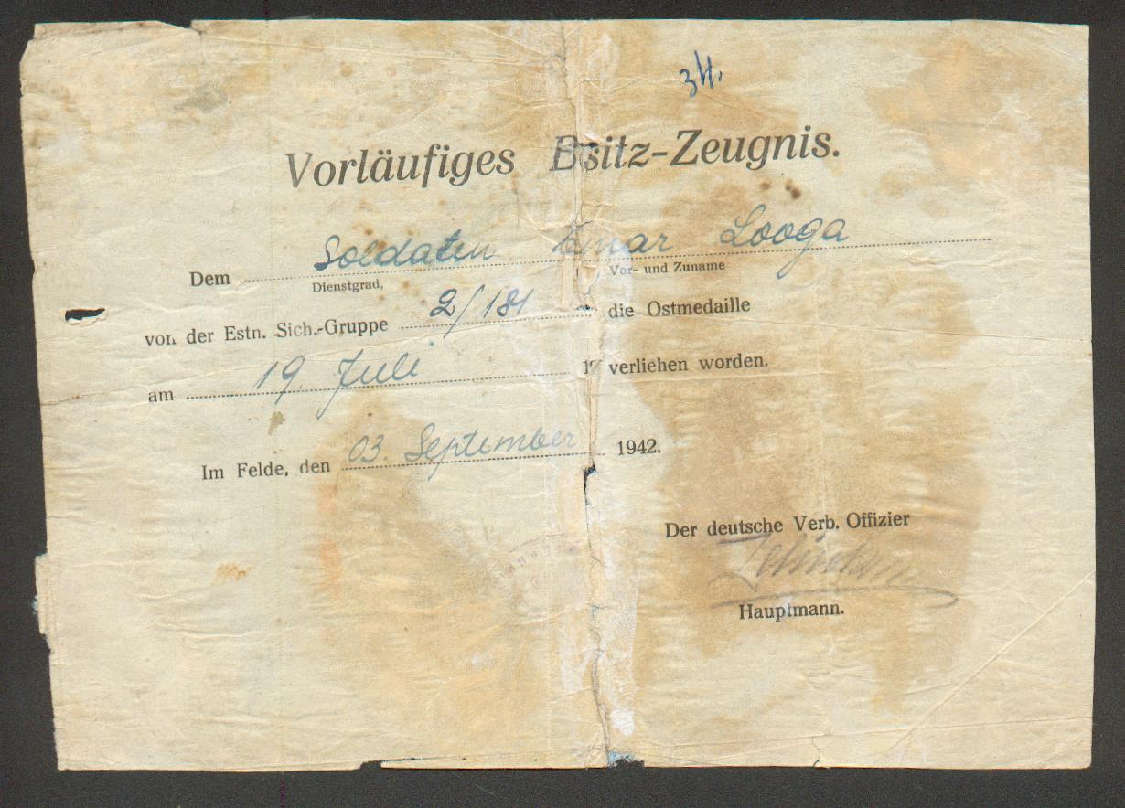 Kaks extra lahedat liistu, mis seovad 1941/42 talvekampaania medali 1.MS-ga