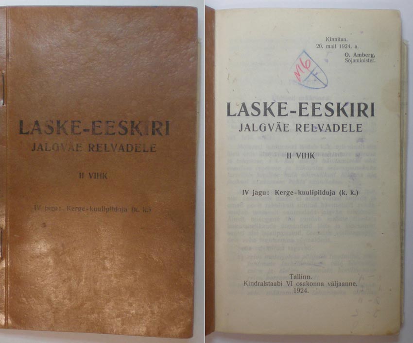 Siin mõned uued - Laske-eeskiri 15€, Arisaka kirjeldus 25€, Kahurväe tegevus lahingus 15€, Väljavõtteid garnisoni määrustikust (kaaned puudu) 10€, Noorkotka kalender-käsiraamat 5€, Noorkotka mängude käsiraamat 20€ ja Lõhkeained on 15€/tk.