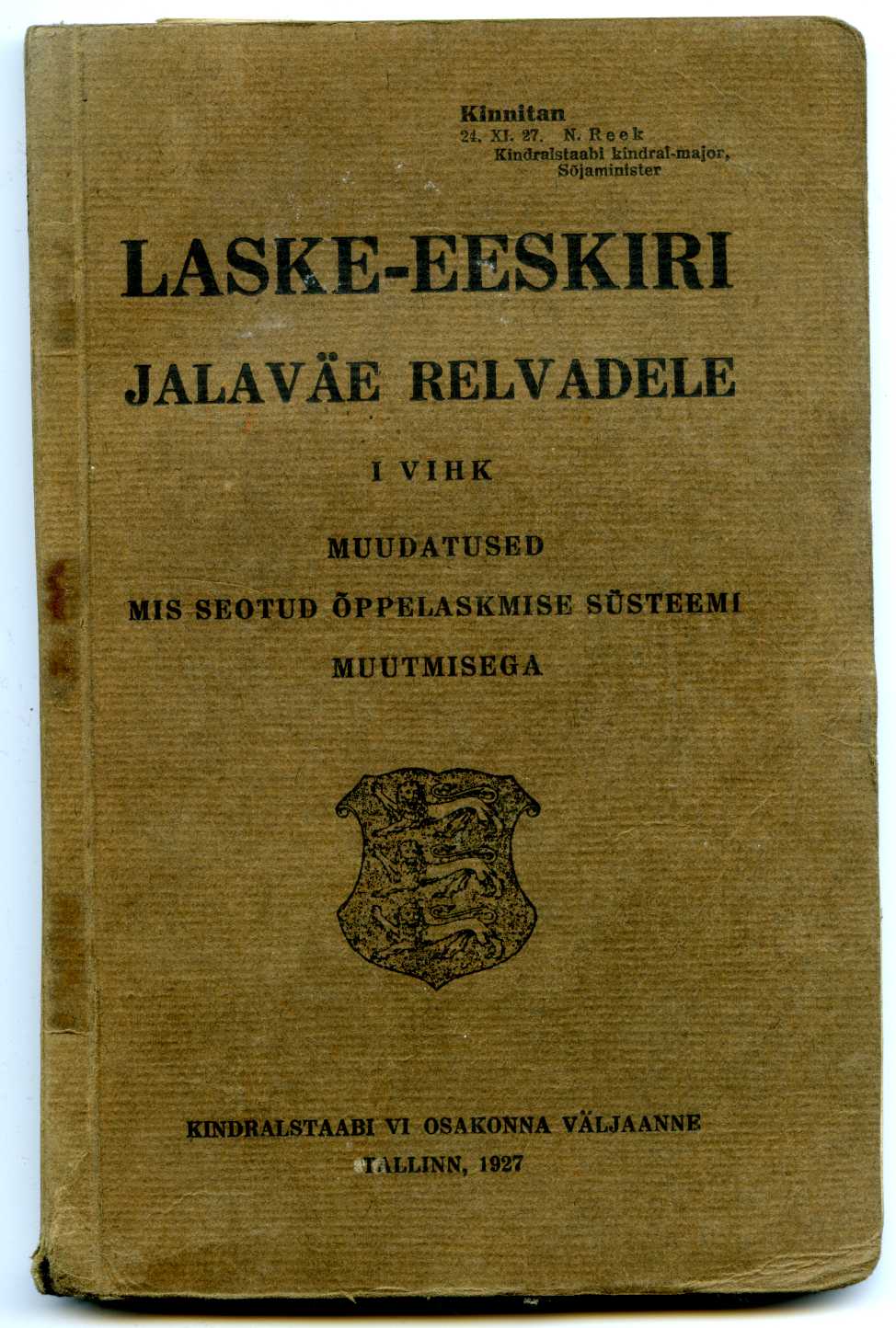 Laske-eeskiri ja suurtükiväe-eeskiri müüdud.