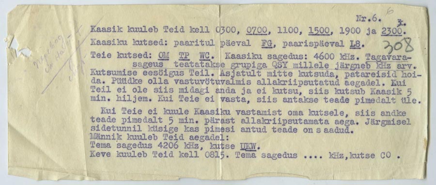 QSY on rahvusvaheline Q kood, millega anti uus sagedus. Ajastu jaoks oleks vaja selgeks teha, kes olid Kaasik, Männik, Keve?uscha kirjutas:Ülo dokumentide hulgast tuli veel selline paber - ei tea, kas tegu võib olla "Erna" aja paberiga või mingi hilisem julgeoleku teema?