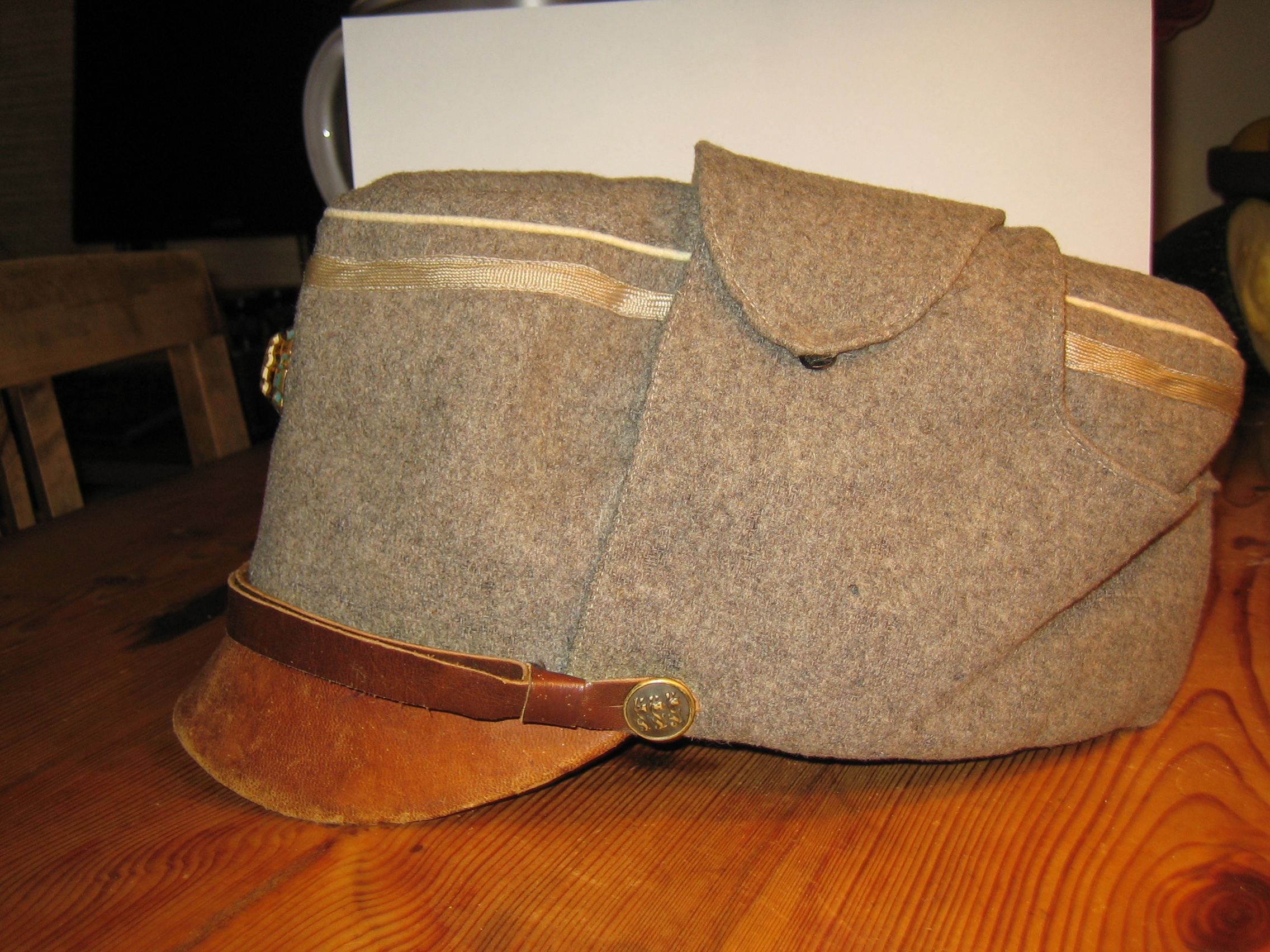 Selle pudelikorgi kohapealt nii palju, et ei ole rohkem auke kuhu midagi panna ja juurde tegema ka ei hakkaks. Vaatasin fotosid raamatust Kaitseliidu Järvamalev ja tuvastasin, et pooled mütsidest ongi ühe märgiga nn. pudelikorgiga. Fotodel aastast 1925 ja 26 on nad hallid ja edasi hakkavad segunema juba khaki värvi kangaga mütsidega. Vähemalt tundub nii kui mustvalget fotot vaadata.