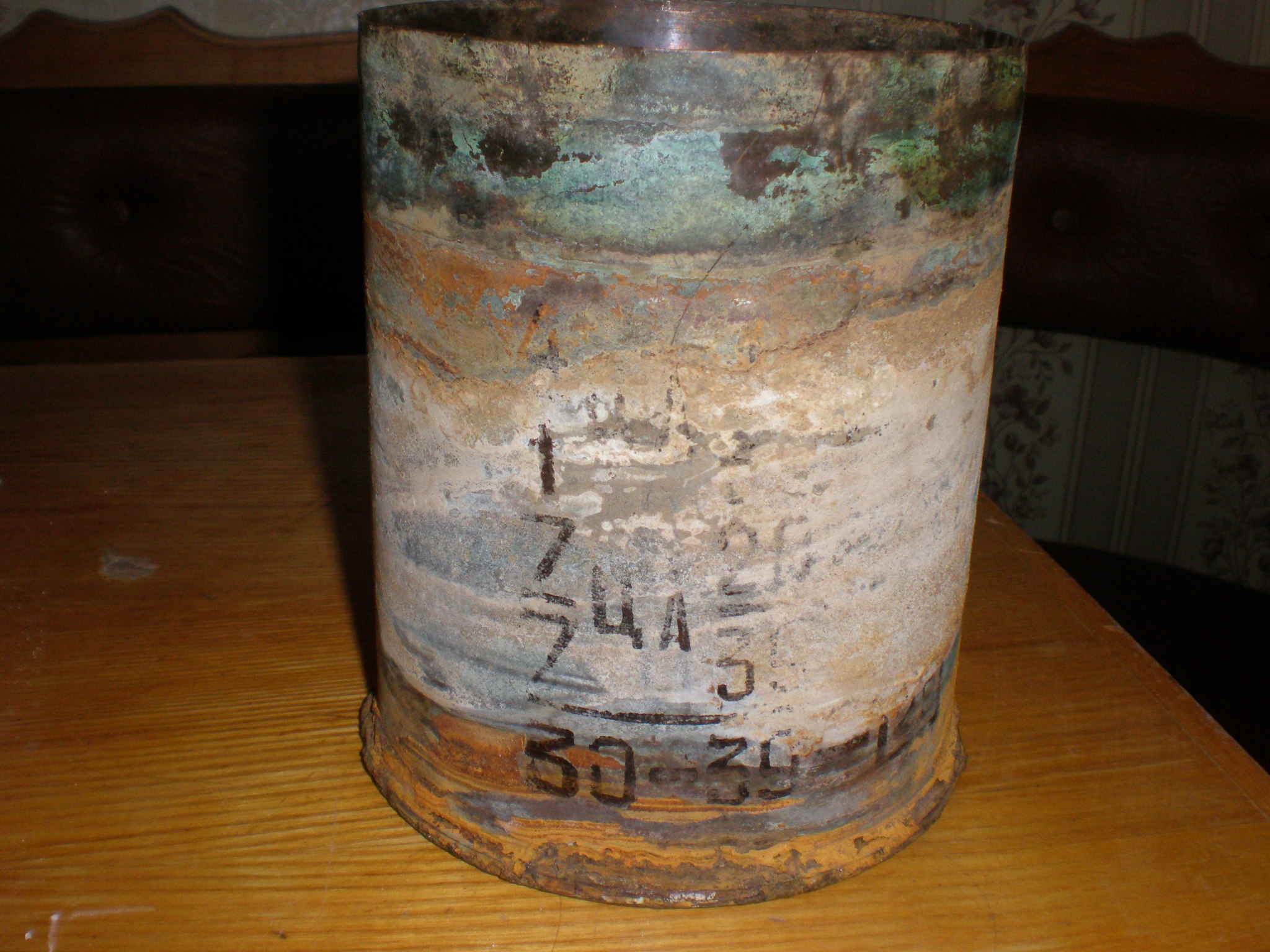 Leidsin siis vanaisa kuuri alt sellise huvitava kesta. Pikkus 15,8 cm ja läbimõõt 12,4 cm.