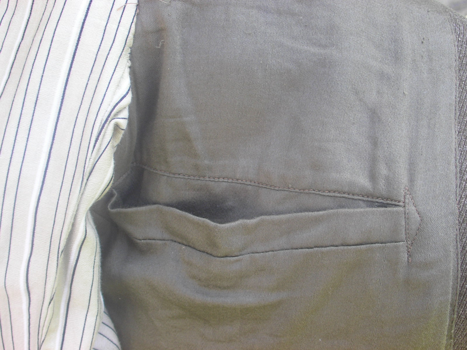 Siiski,hea valguse käes vaadates on pleekimise jäljed olemas. Paguni kohad on ka teistvärvi niidiga uuesti kokku õmmeldud. Voodrit on ka õlgade juurest käsitsi kokku traageldatud. Nii, et pagunid on seal kunagi ikka olnud. Endal mul seda kuube vaja ei lähe. Kui keegi veel tunneb huvi, siis võib küsida.