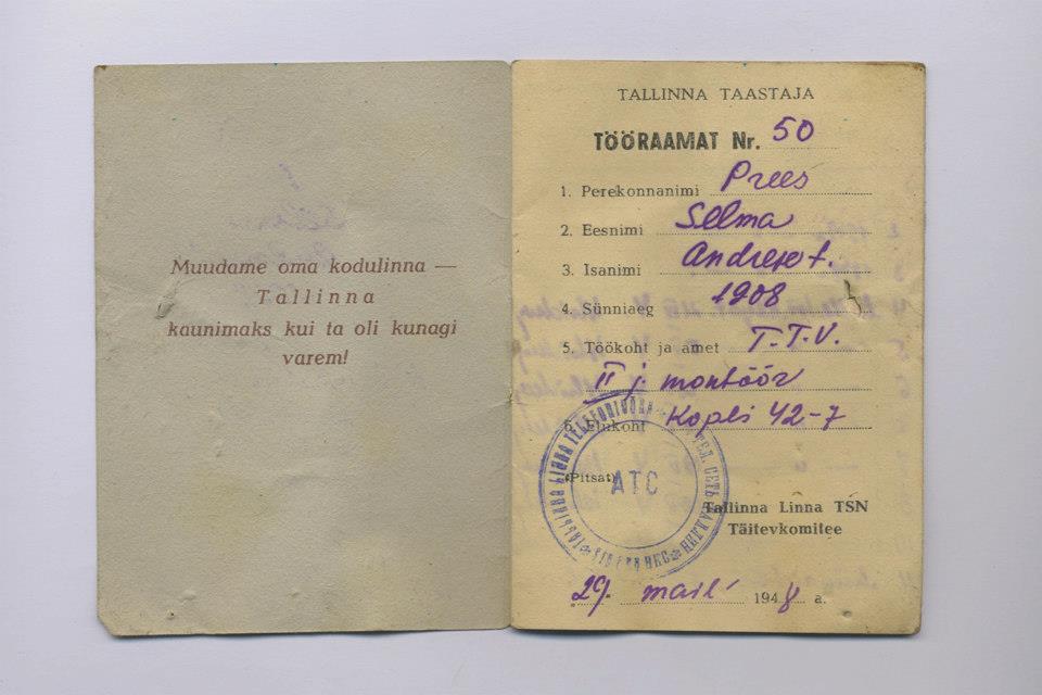 Tööraamatu fotod ja ülesvõte "1947" - Heino Prunsvelt.