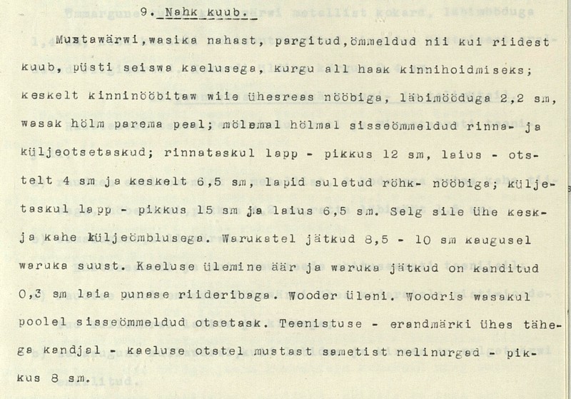 Siin on 1929. aasta nahktagi, hilisemat ei ole veel leidnud.