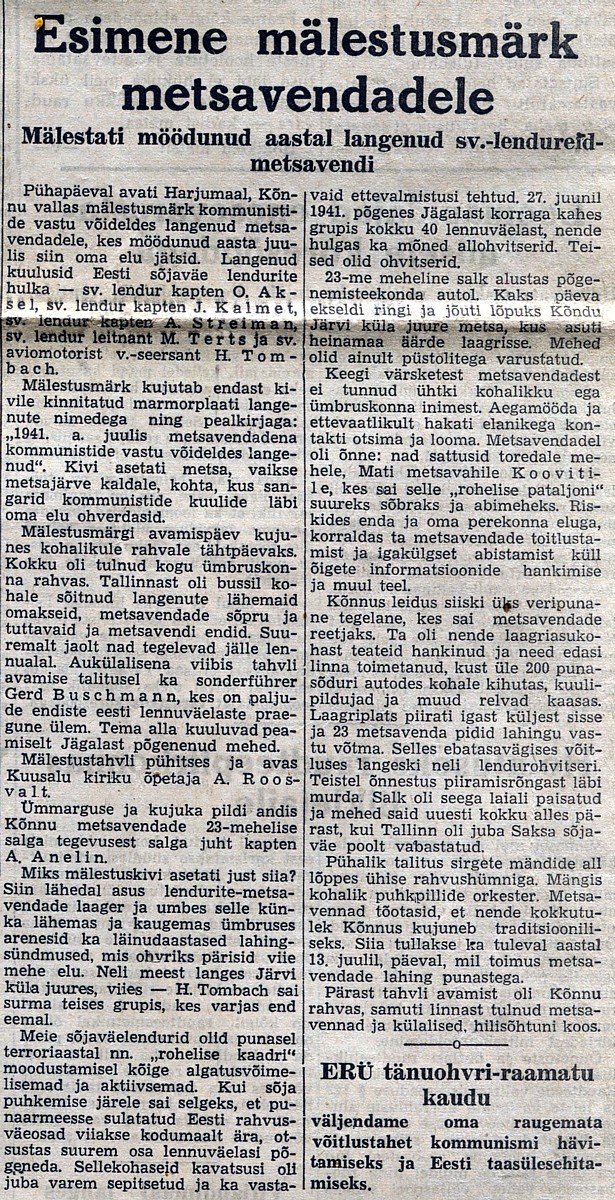 - Kodu Foorumi pealeht METSAVENNAD / FOREST BROTHERS Esimese Nõukogude Okupatsiooni Ajal/During the First Russian Occupation
