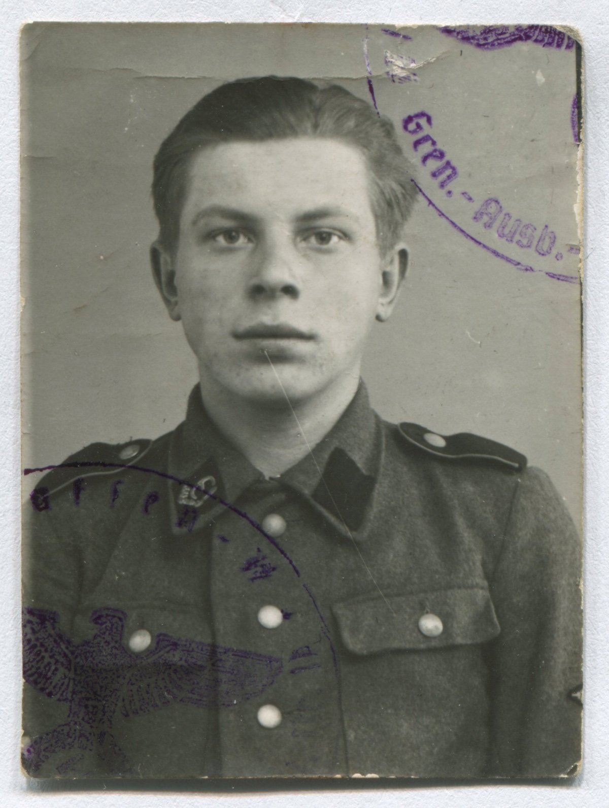 LW-Helfer / SS-Grenadier Henry Rüütel, säilinud on ainult palgaraamatu esikaane siseküljel olnud portreefoto.