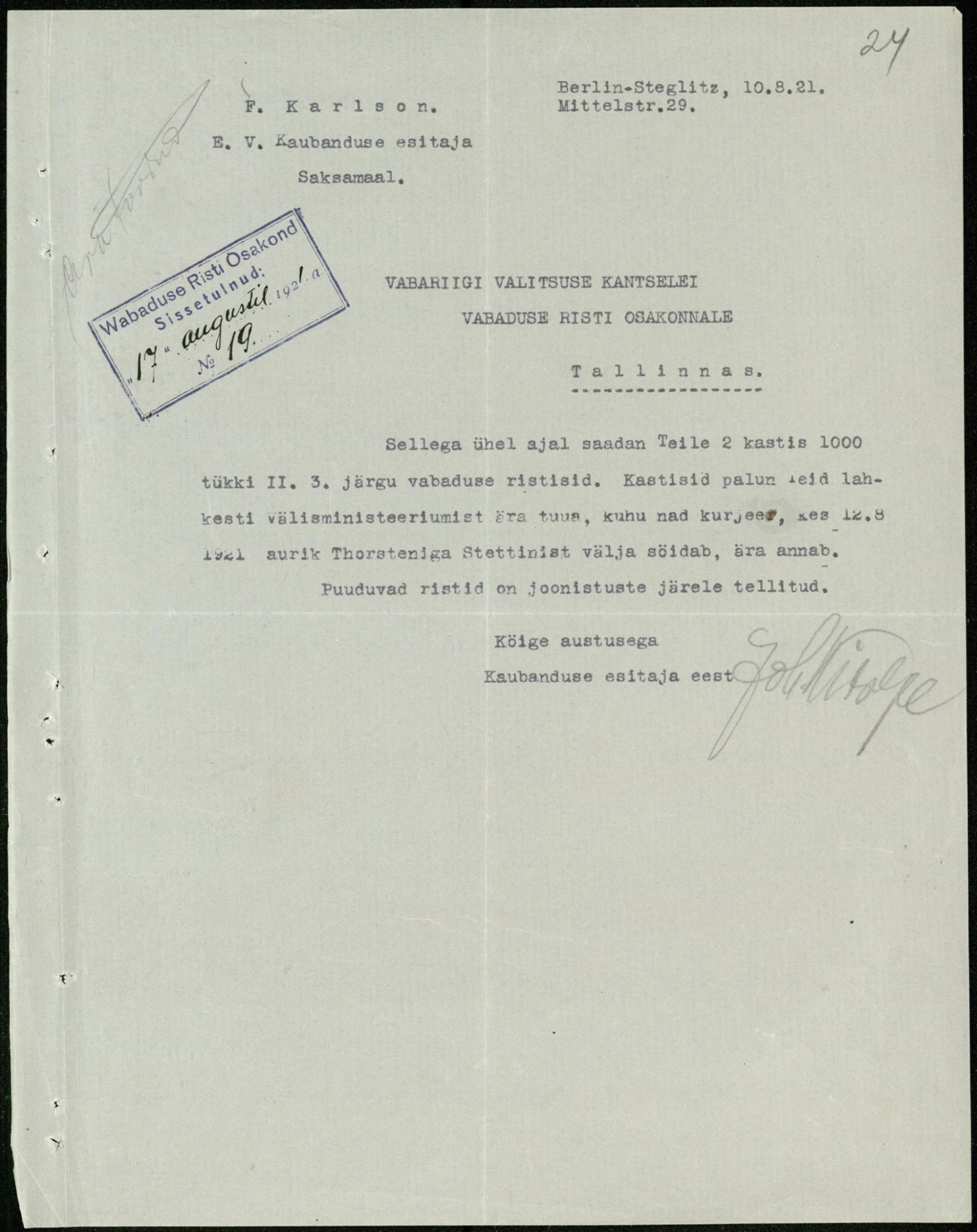 Wiking-Estland kirjutas:Selline kiri oli siis juures.