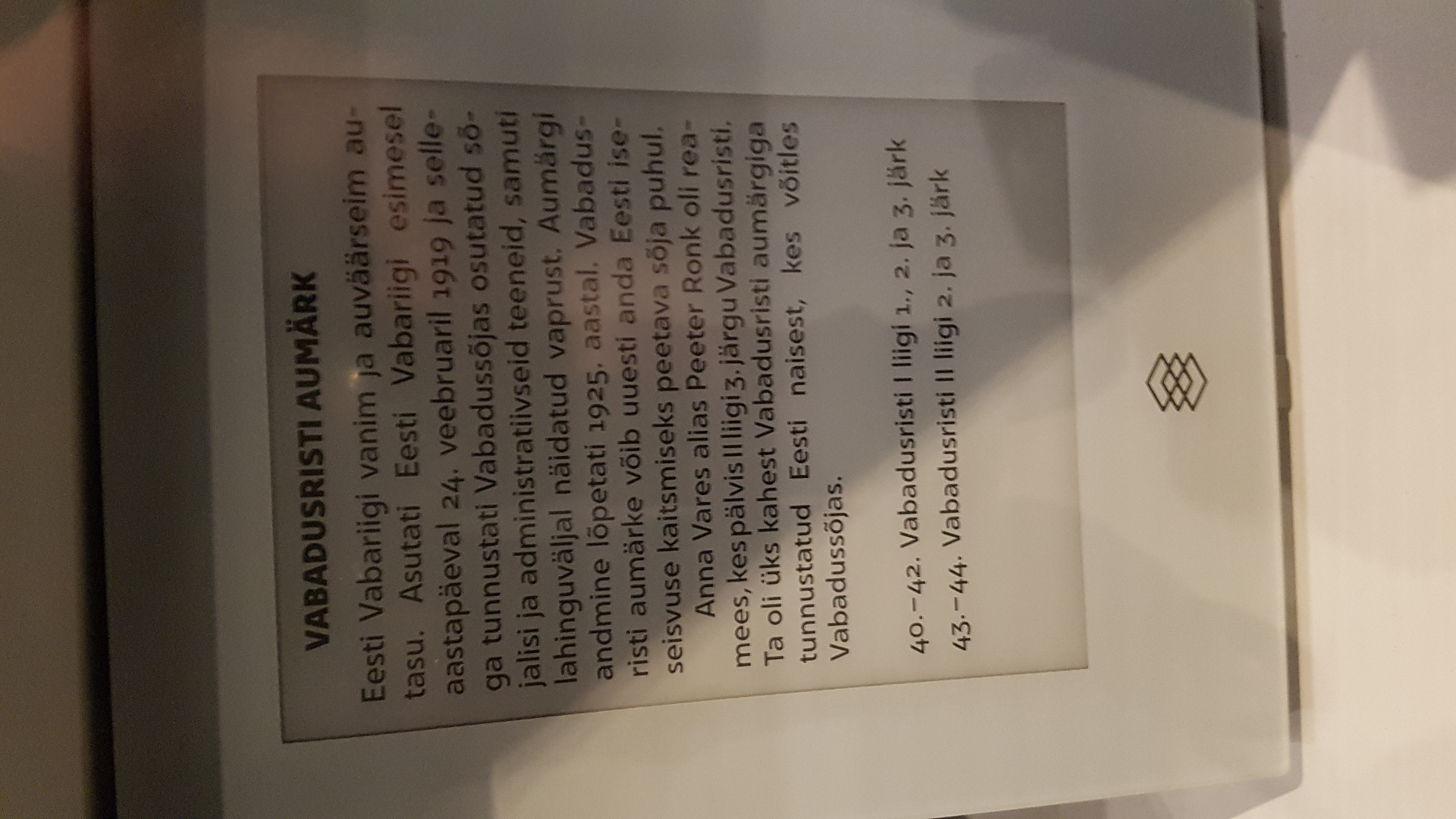 Wiking-Estland kirjutas:Ma mõtlesin ikka endisi omanikke- kavalere. Autasud on püsiekspositsioonis- ju siis "kohalikud".