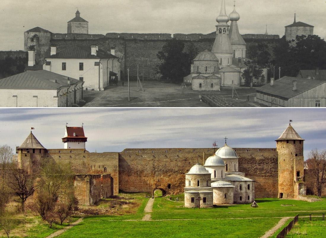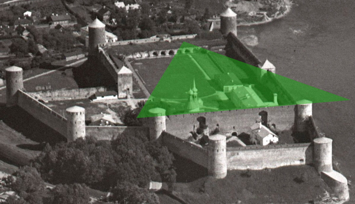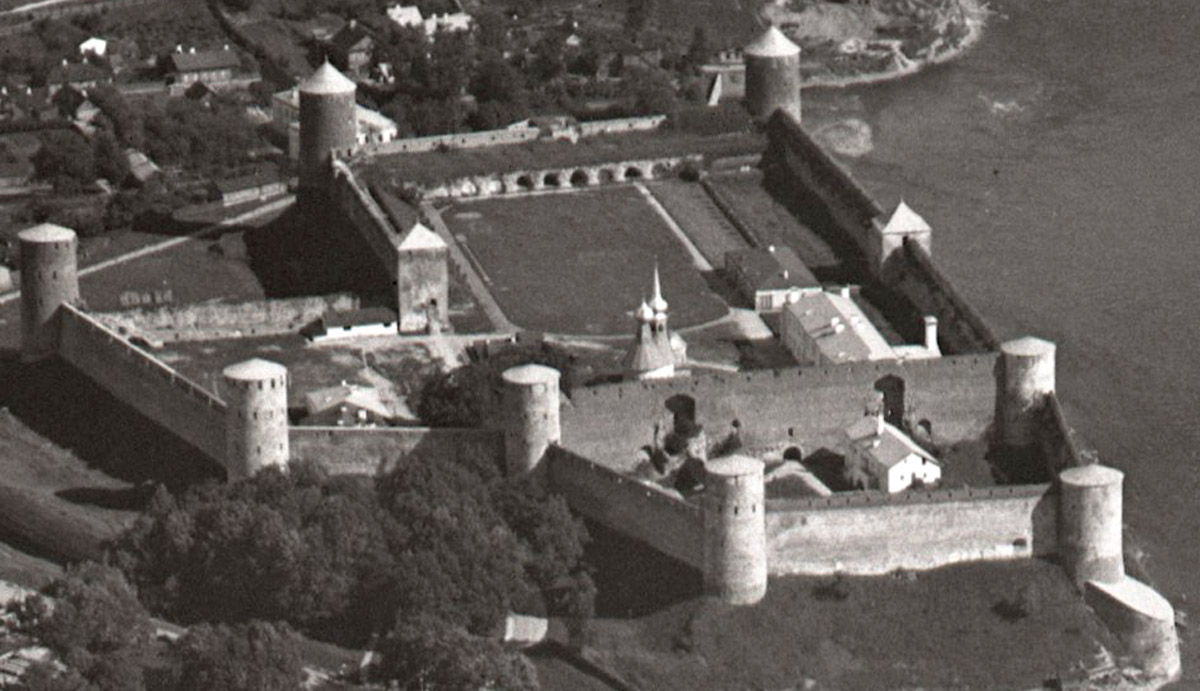 Valge maja tagant paistab teisel pool jõge asuva Hermanni kindluse torn ja sarnaselt H. kindlusega on ka J. kindluse hoovil näha üks suur puubarakk, mis 1930. aastate I pooleks oli maha lammutatud (eelnevalt postitatud aerofotol seda enam näha ei ole).