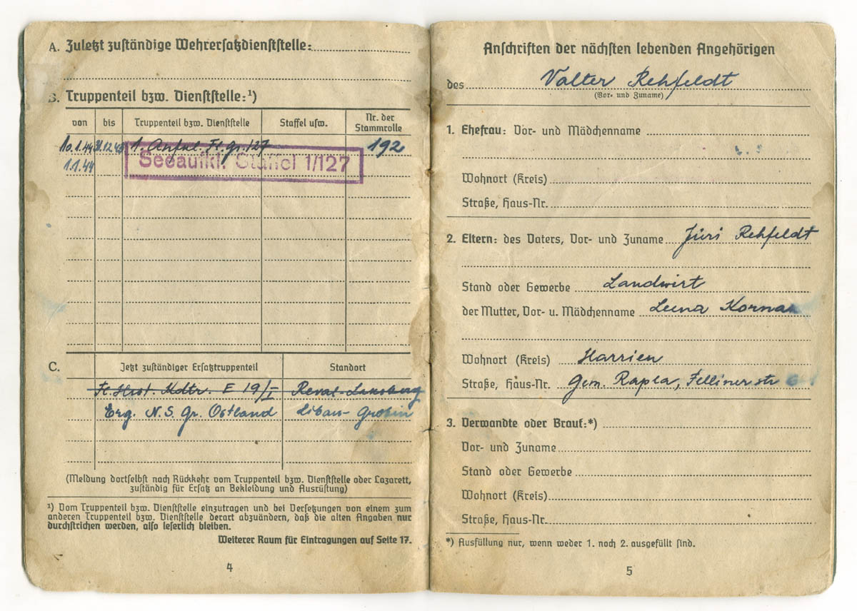 Siin on veel üks täpselt samasuguste kuupäevade ja teenistuskohtadega Soldbuch.