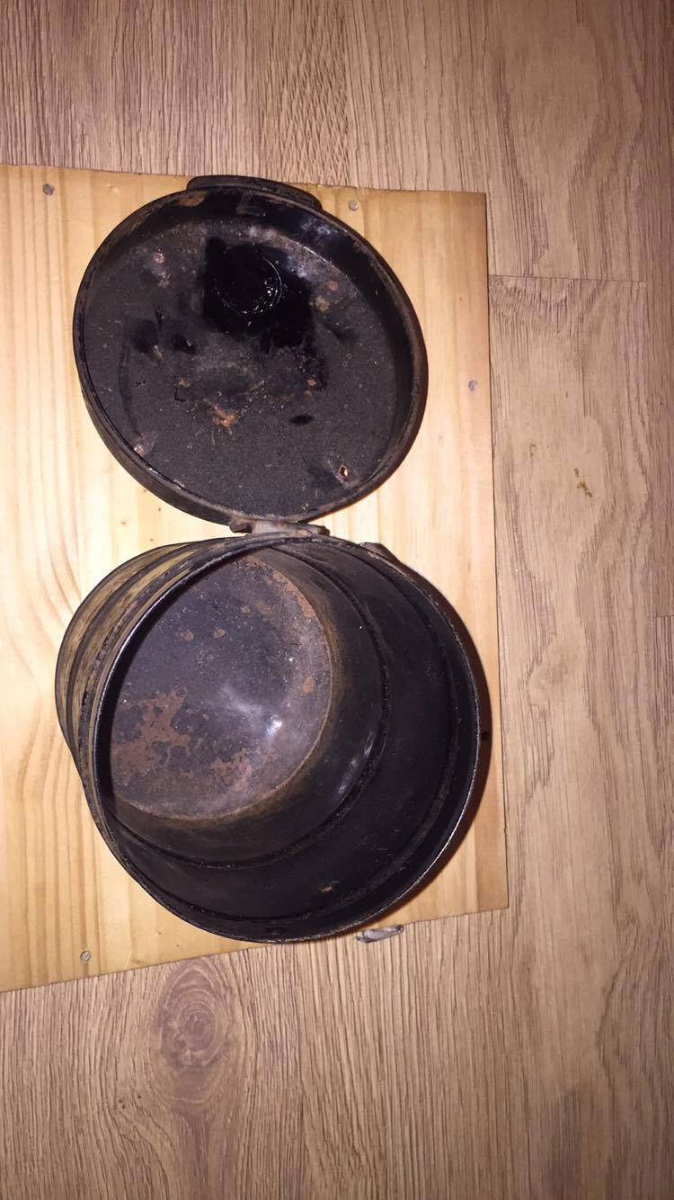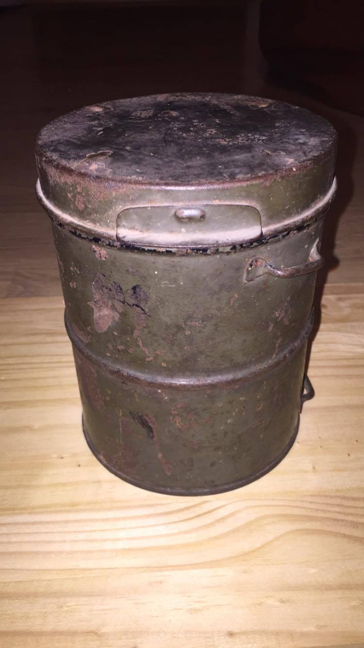 Sain siis sellise asja. Tegu peaks olema I ms. saksa gaasimaski torbikuga M-15. Kahjuks lisaklaasi nökatsid/klambrid ära murdunud.