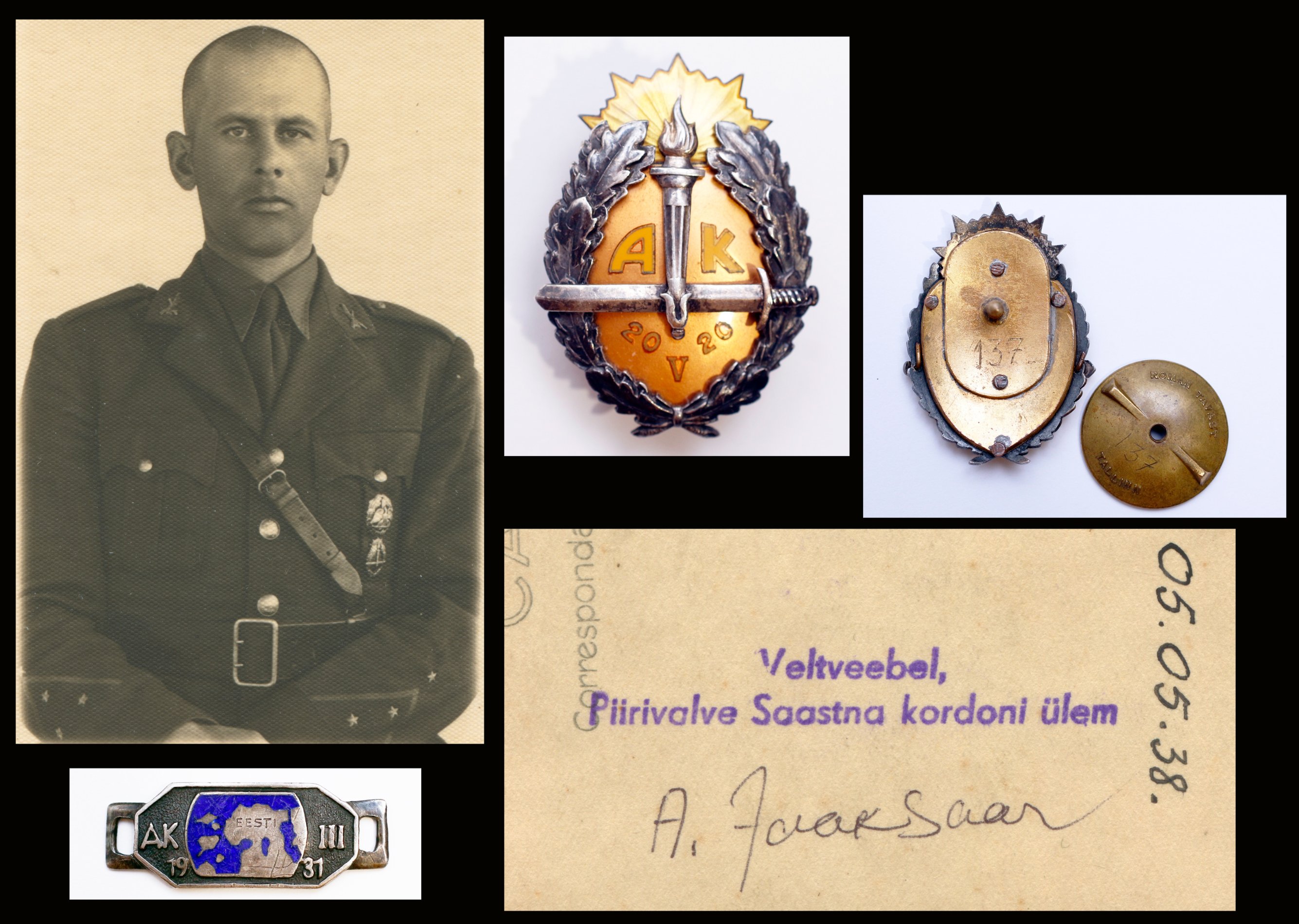 1931. aastal Kaitseväe Ühendatud Õppeasutuste Allohvitseride Kooli õppekompanii 3. üleajateenijate täienduskursuse lõpetanud veltveebel Aleksander Jaaksaare AK rinnamärk. Rinnamärgil ja mutril number 137. Kui juba kolmanda lennu märk oli kollaste AK tähtedega, kas siis mustade tähtedega olid I ja II lend või ainult I lend?