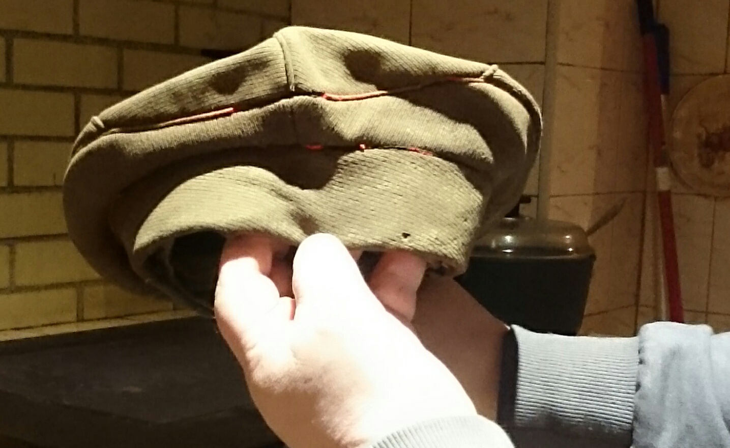Tere.Saaremaa pööning andis välja sellise nukra mütsi.Mütsil punane triip.Kas kahurvägi?
