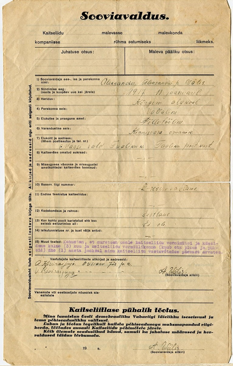 Maasi mehe sooviavaldus.