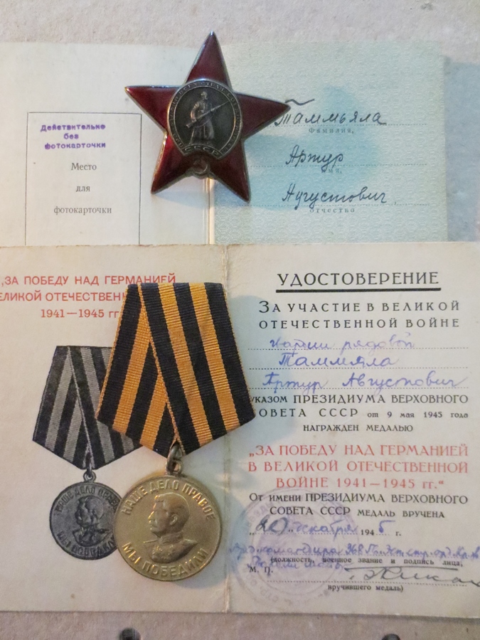 Laskurkorpuse 368. Kaardiväe Laskurpolgu reamehe Artur Tammjala Punatähe orden.