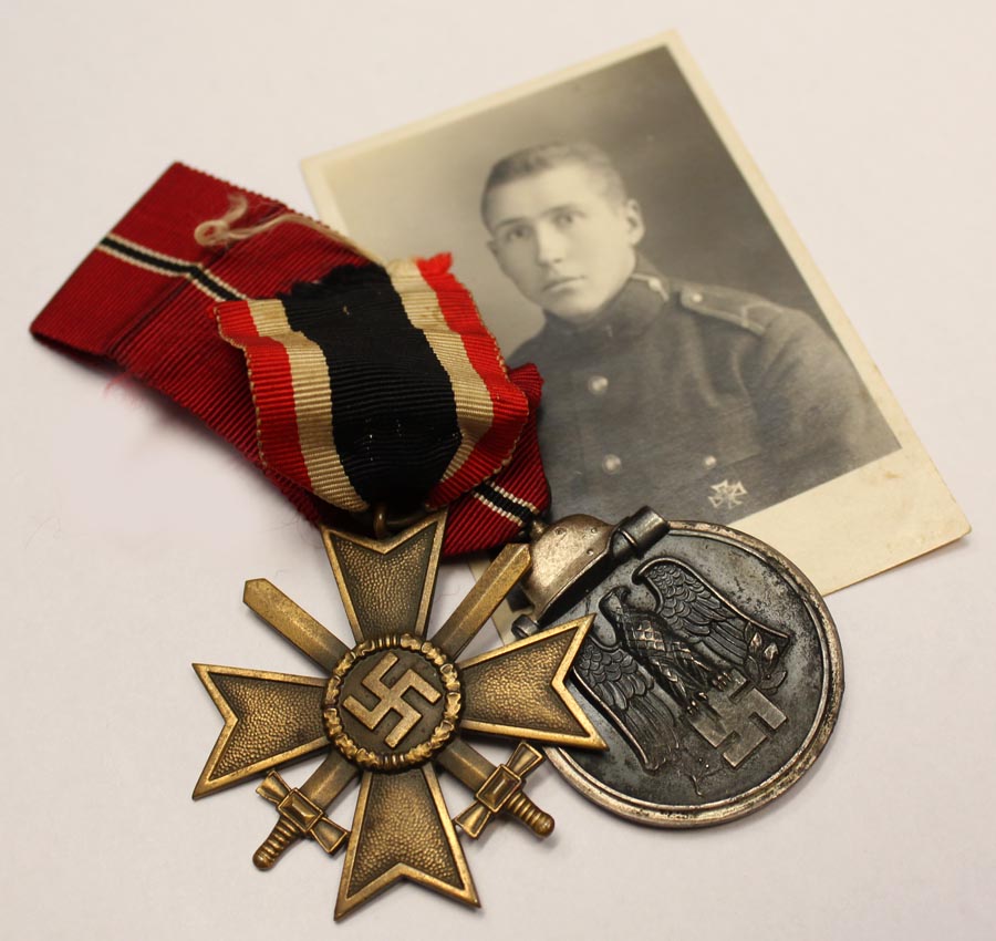 Paar päeva tagasi saadud komplekt, Elmar Raja EW aegne portreefoto, 2. klassi sõjateeneterist ja "Talvelahingud Idas" medal ...