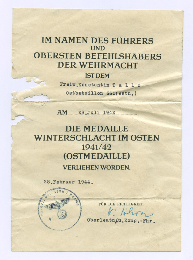 Lisan selle kollektsioonide alafoorumis populaarseks osutunud medali koos dokumendiga ka siia.