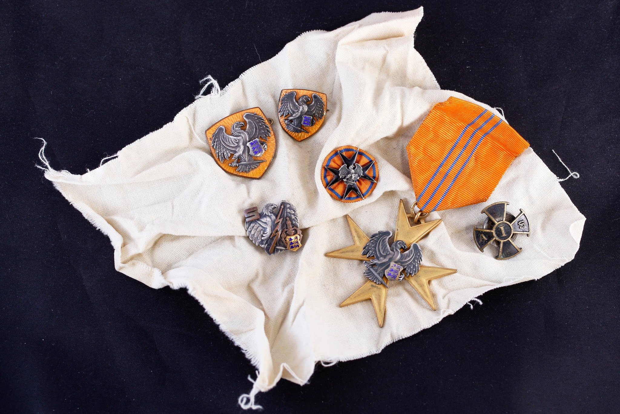 Eile (11.09.2024) lisandus kollektsiooni tore peotäis ennesõjaaegseid märke - Kaitseliidu Tallinna maleva Sidekompanii rinnamärgi miniatuur, Kotkaristi Kuldrist, Kotkaristi V klassi miniatuur, KL liikmemärgid ja Allveelaevastiku Sihtkapitali korjandusmärk.