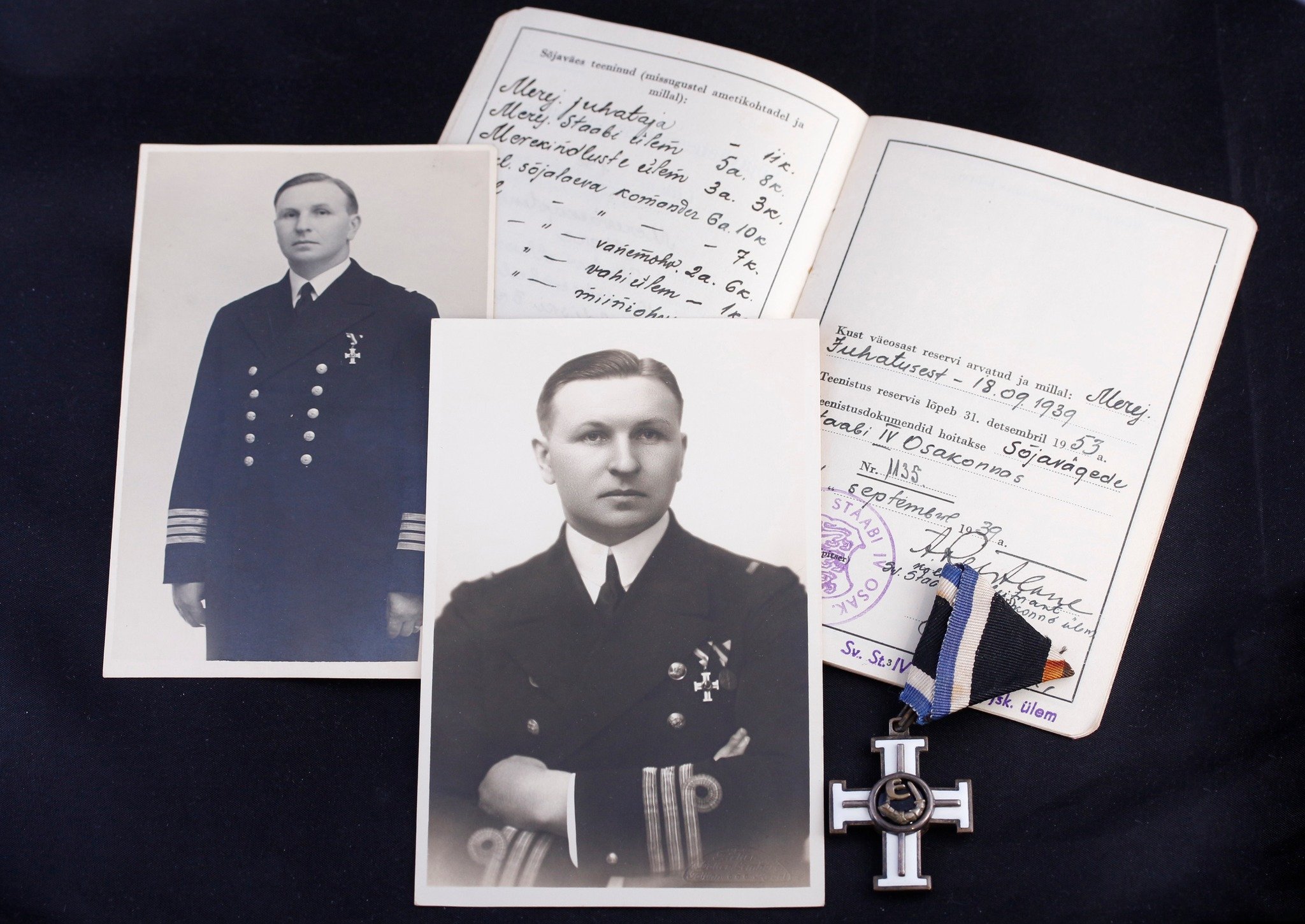 Pildil on sündmuse tõttu ametist vabastatud Valev Mere Vabaduse Risti I liigi 3. järk, portreefotod ja Kaitseväeteenistuse tunnistus, kuhu on märgitud, et ta on 18.09.1939 Merejõudude juhatusest reservi arvatud.