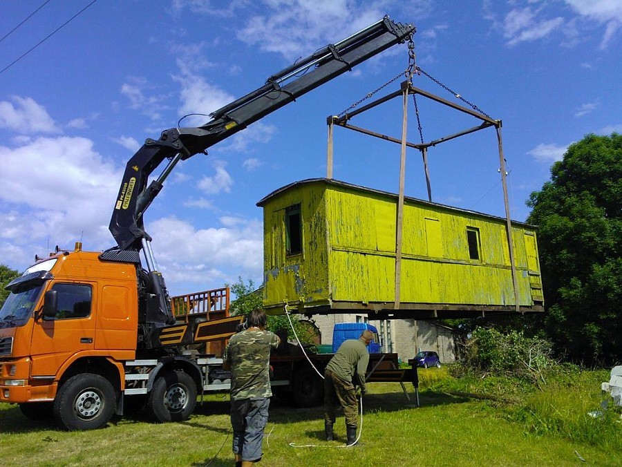 Mõisakülas kahekümnendatel aastatel valmistatud kitsarööpmeline reisivagun saabus täna Saaremaa Sõjavara Muuseumi uue eksponaadina Orissaarde.
