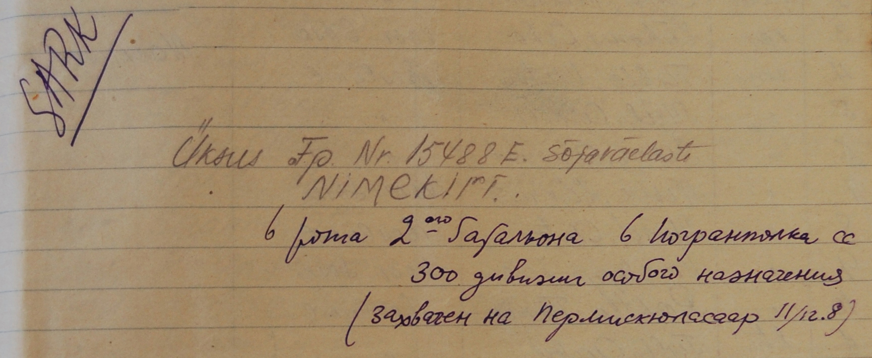 SARKI kirjatsura on selle märkinud 6. Piirikaitserügemendi II pataljoni kuuenda kompanii nimekirjaks.